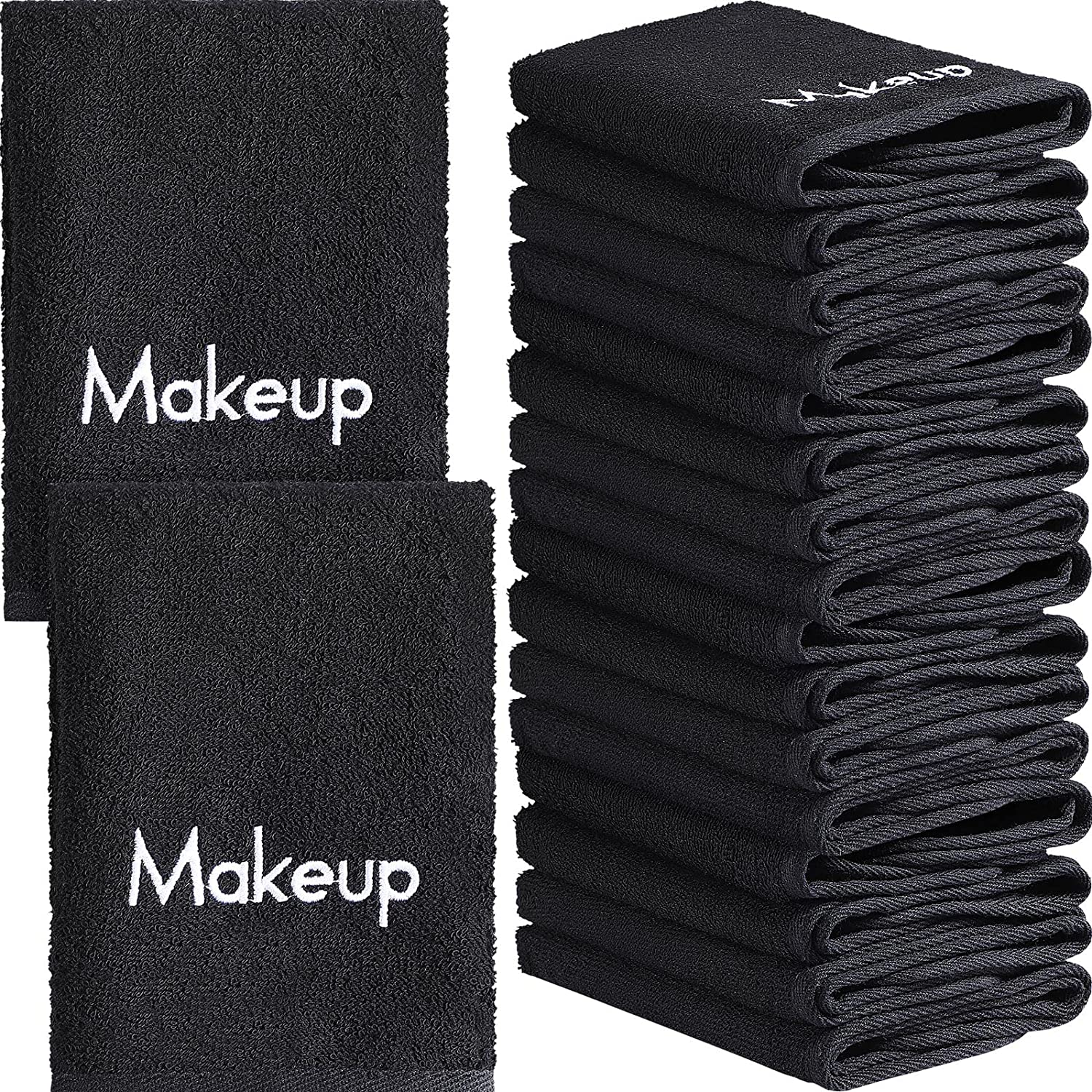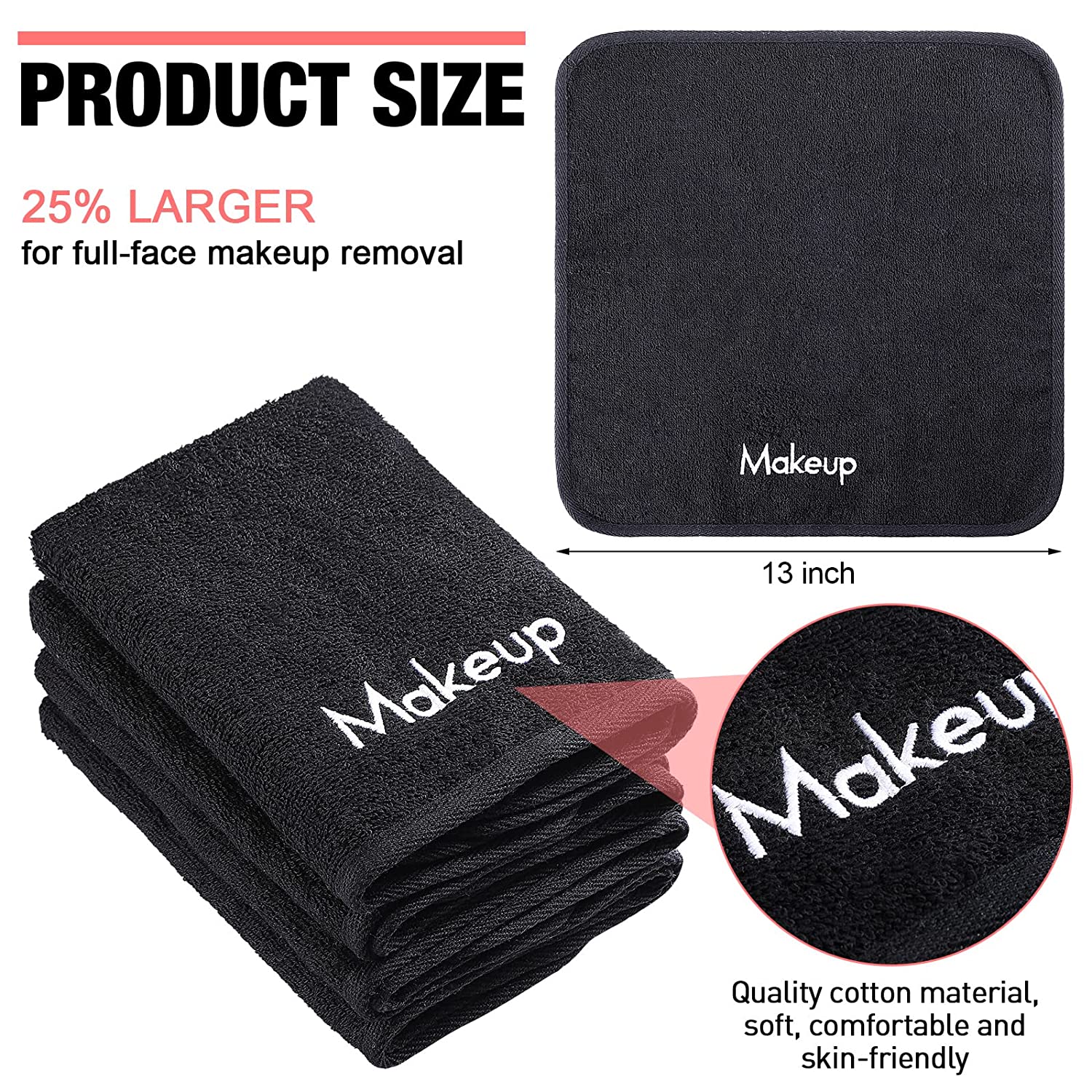 18 Pcs Makeup Remover Towels 13 x 13 Face Cotton Washcloths with Makeup Embroidery Black Facial Reusable Makeup Remover Cloth Soft Cleansing Makeup Washcloths Holiday Gift for Women