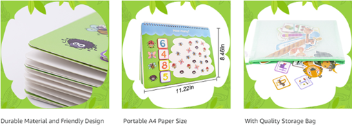 -Smooth edges protect little hands, strong adhesive sticker dots easy to match, and won't fall.