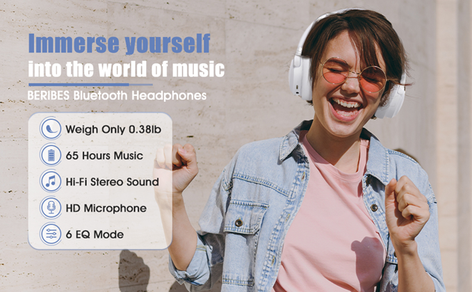 - ?【Optional 6 music modes】Adopted most advanced dual 40mm dynamic sound unit and 6 EQ modes, BERIBES updated headphones wireless bluetooth black were born for audiophiles. Simply switch the headphone between balanced sound, extra powerful bass and mid treble enhancement modes. No matter you prefer rock, Jazz, Rhythm & Blues or classic music, BERIBES has always been committed to providing our customers with better sound quality as the focal point of our engineering.