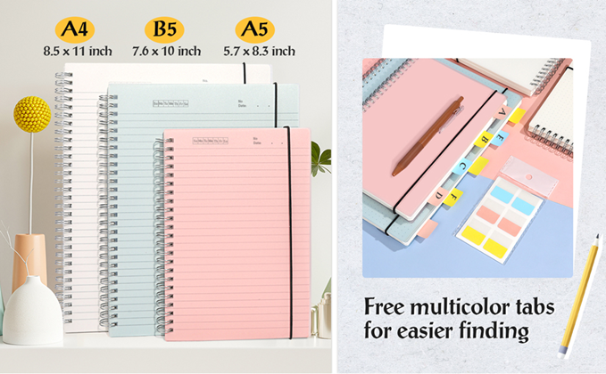• PERFORATED PAGES - Perforated sheets make it easy to tear out assignments. Sheets measure 11" x 7.8" when torn out. You can stick the subject name on the notebook with free 5 Pieces multicolor tabs for easier finding information.