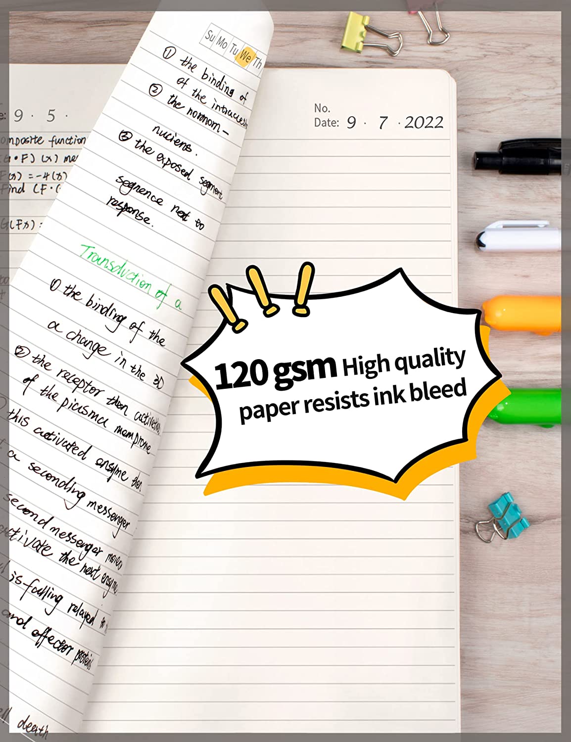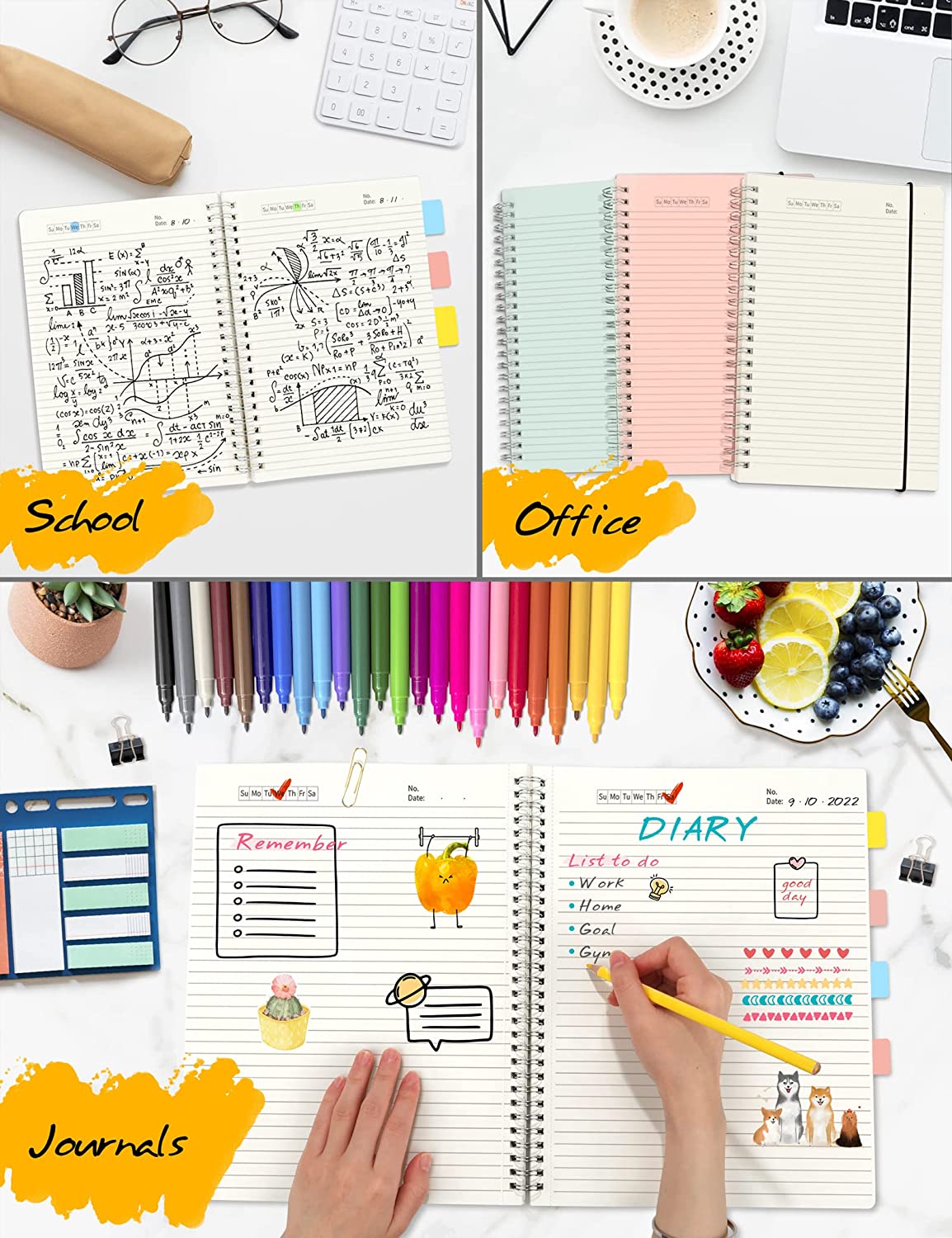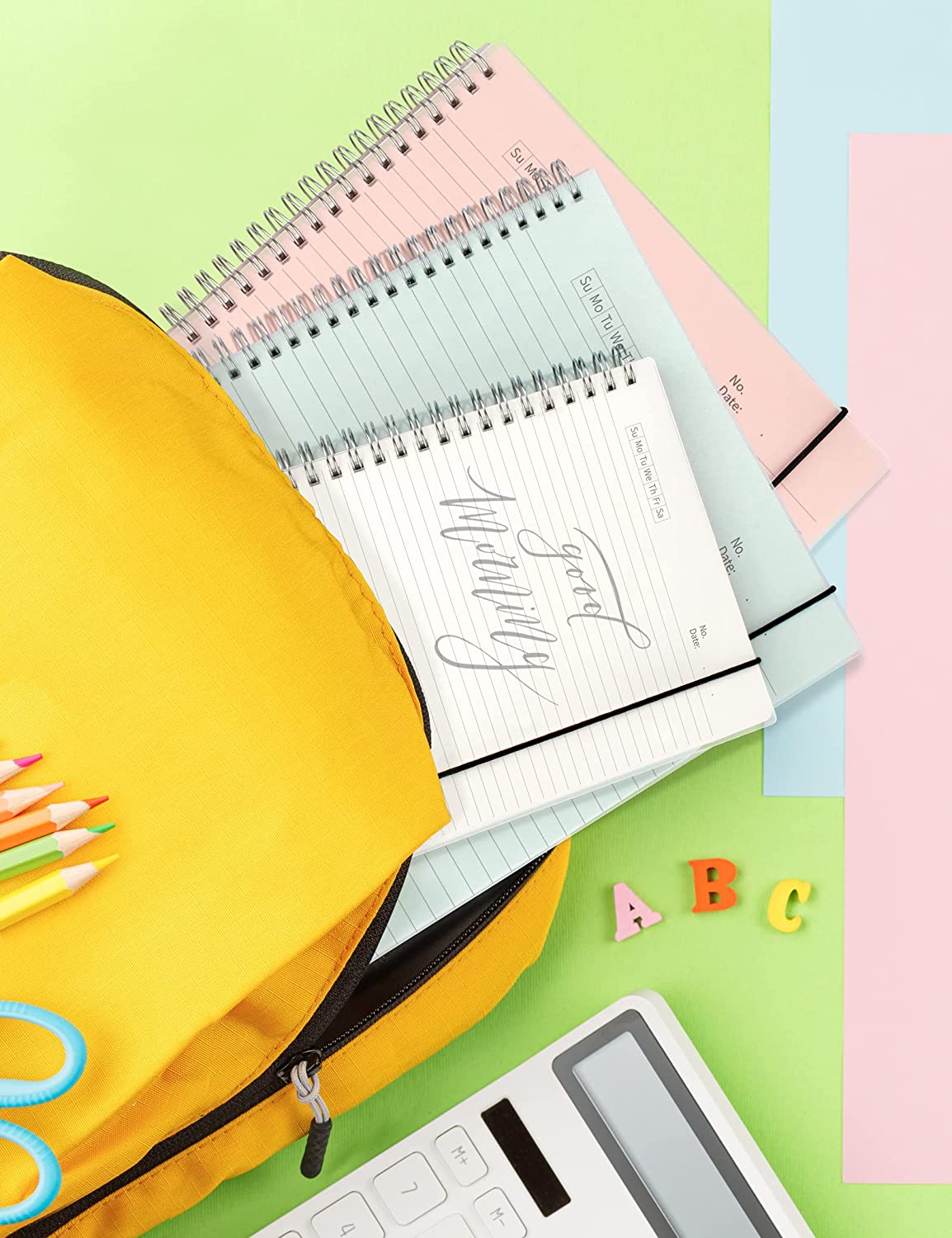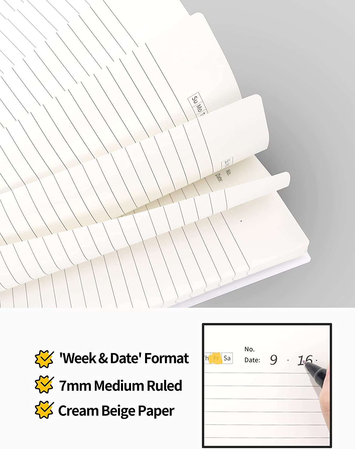 • DOUBLE SPIRAL & DATE DESIGN - The spiral binding is sturdy but flexible. There are Sunday through Saturday boxes and "No.___ Date___" in the top corner of every page, front 'n back. Help you stay organized while taking notes.