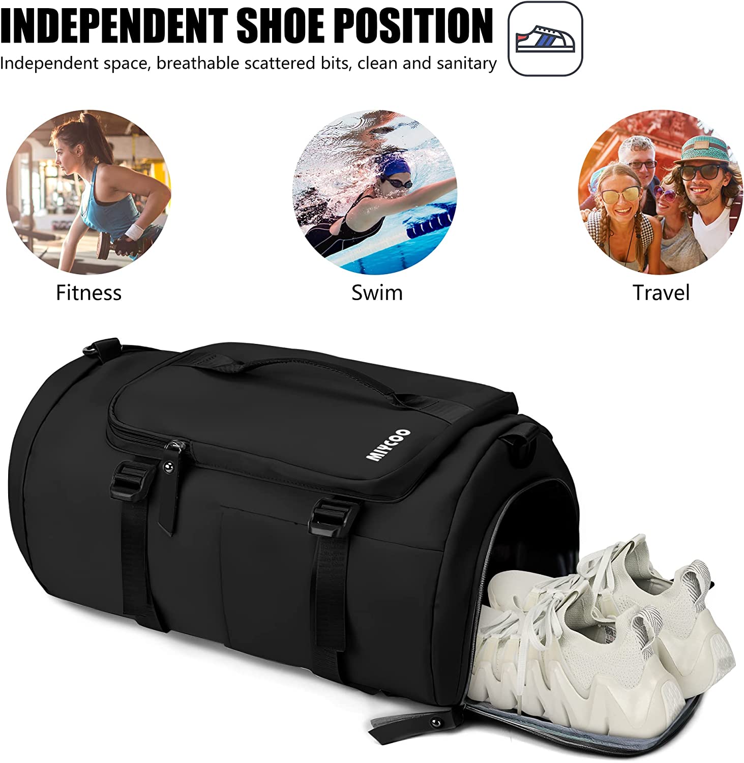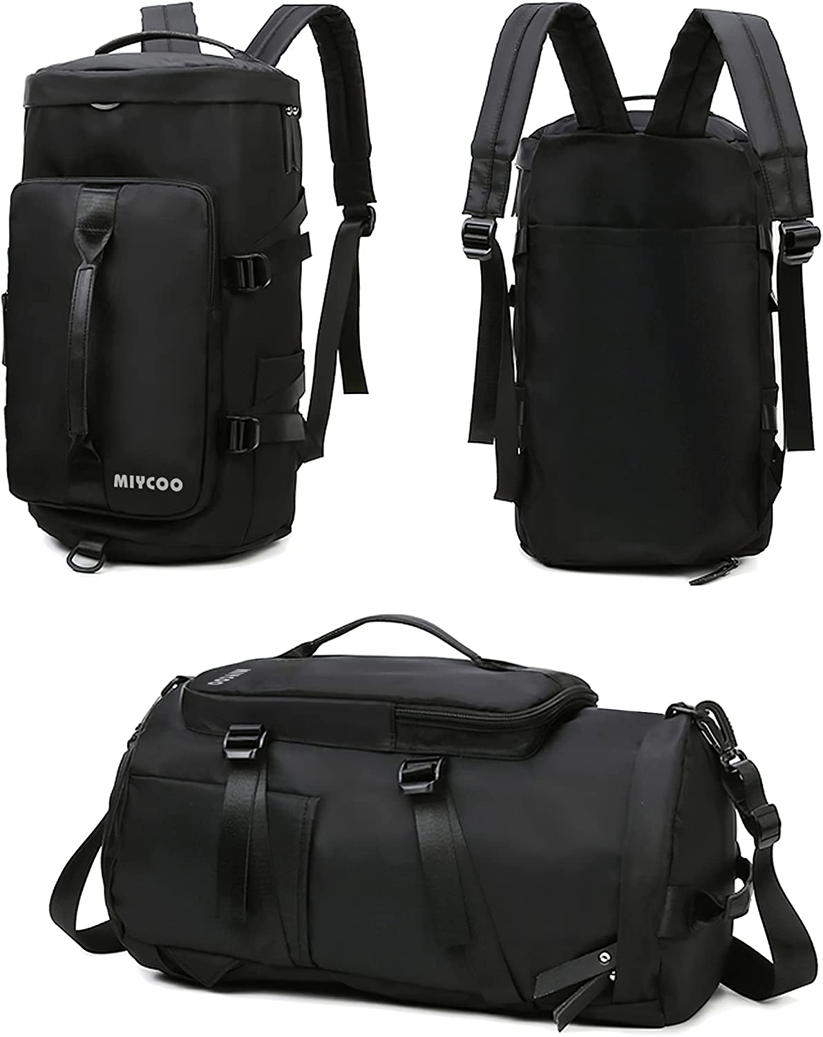 MIYCOO Gym Bag for Men and Women Sports Duffle bag Travel Backpack Weekender Overnight Bag with Shoes Compartment Black
