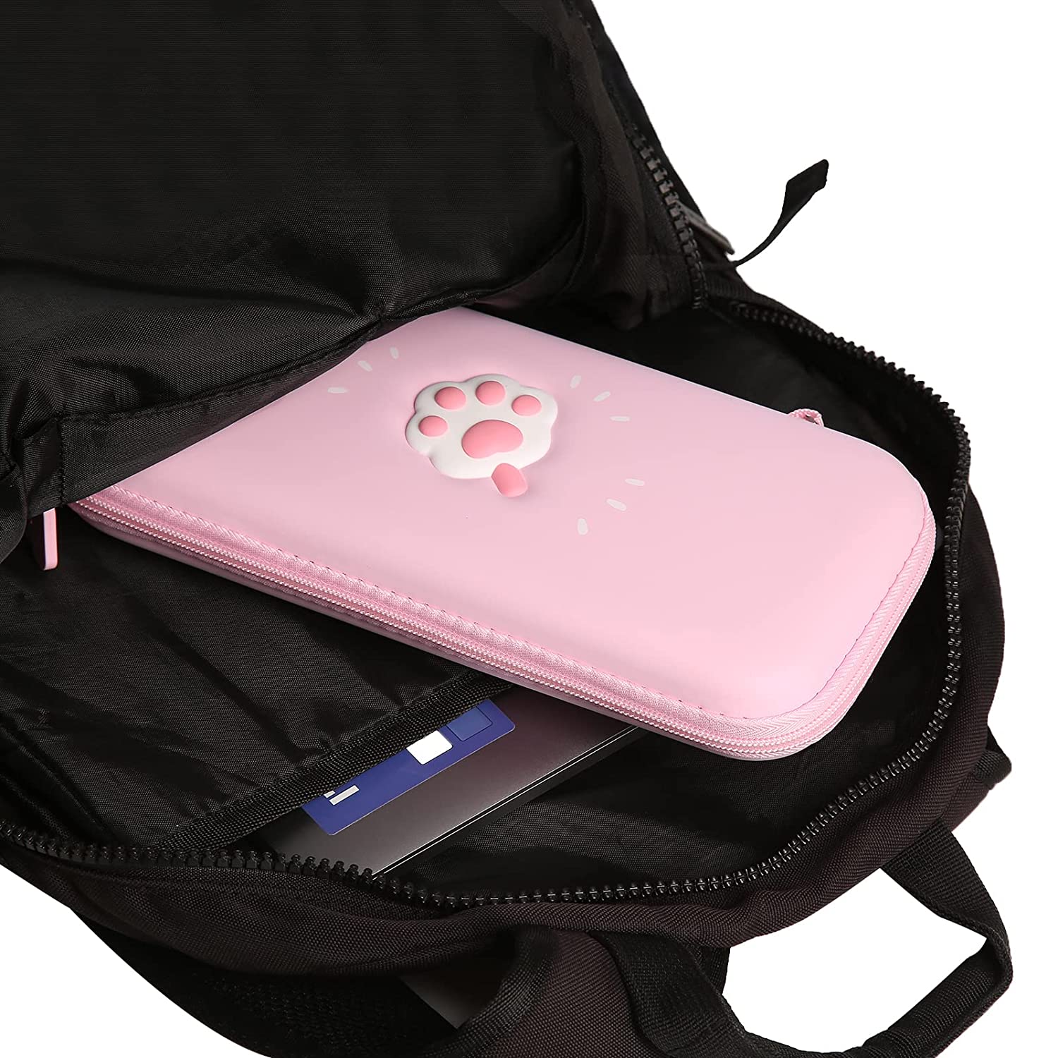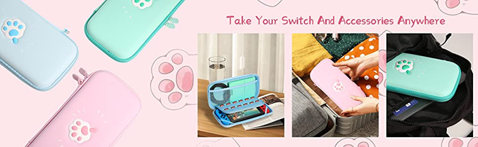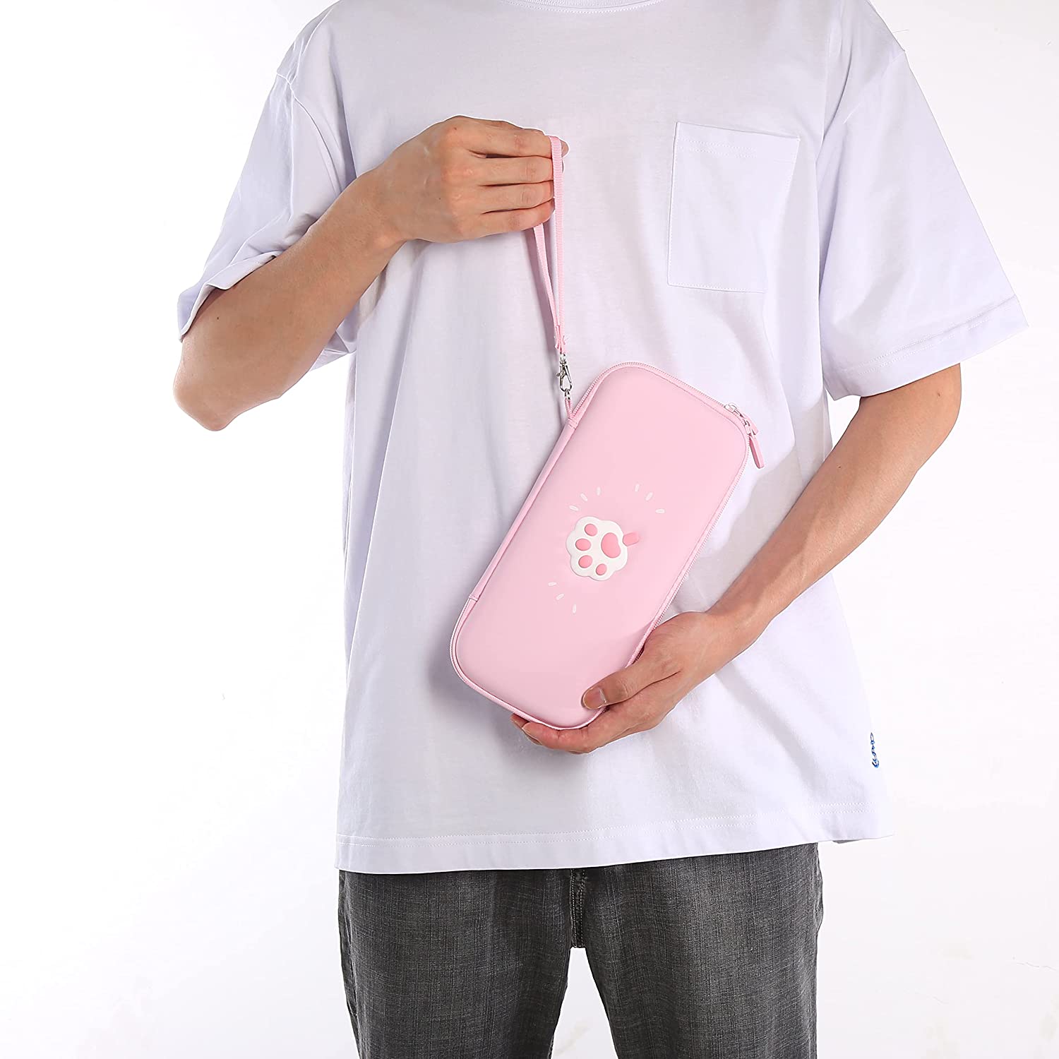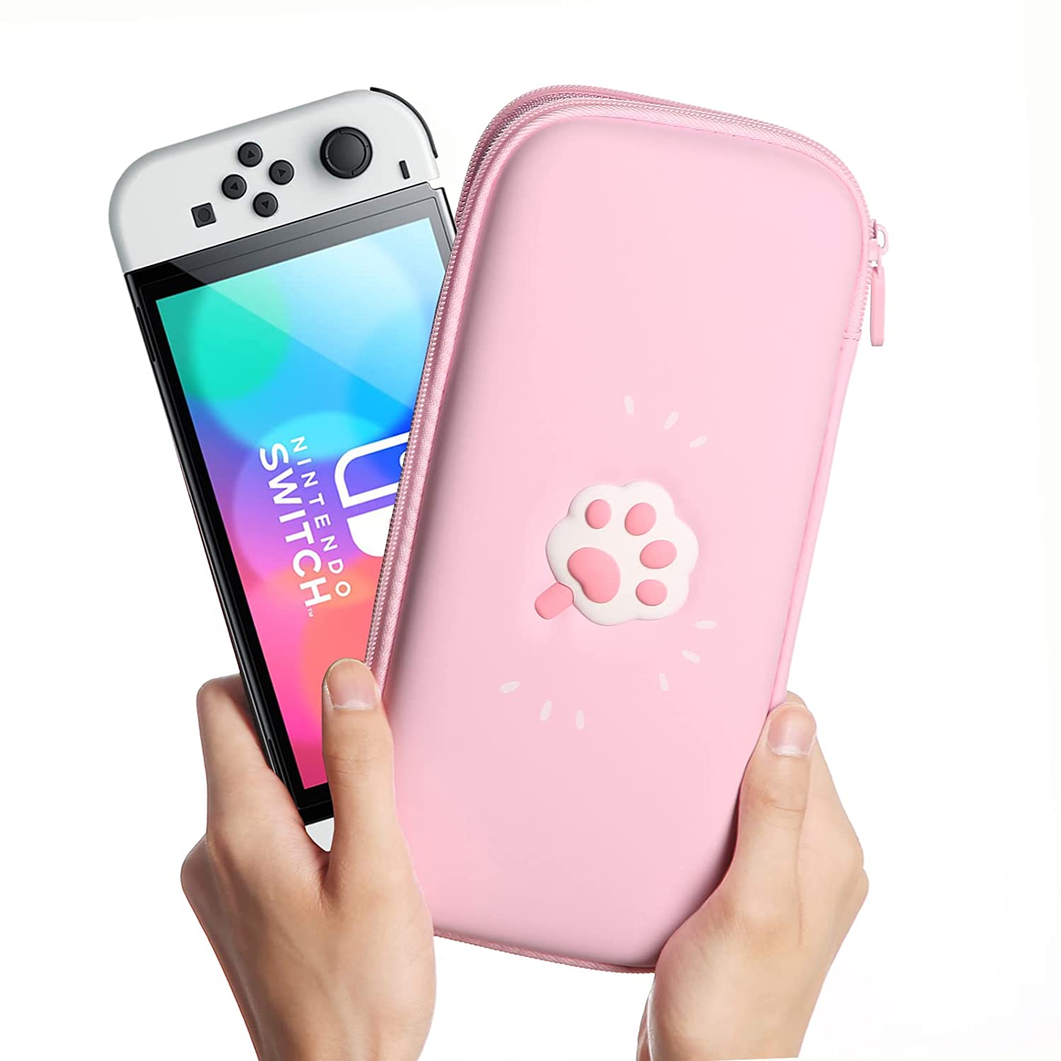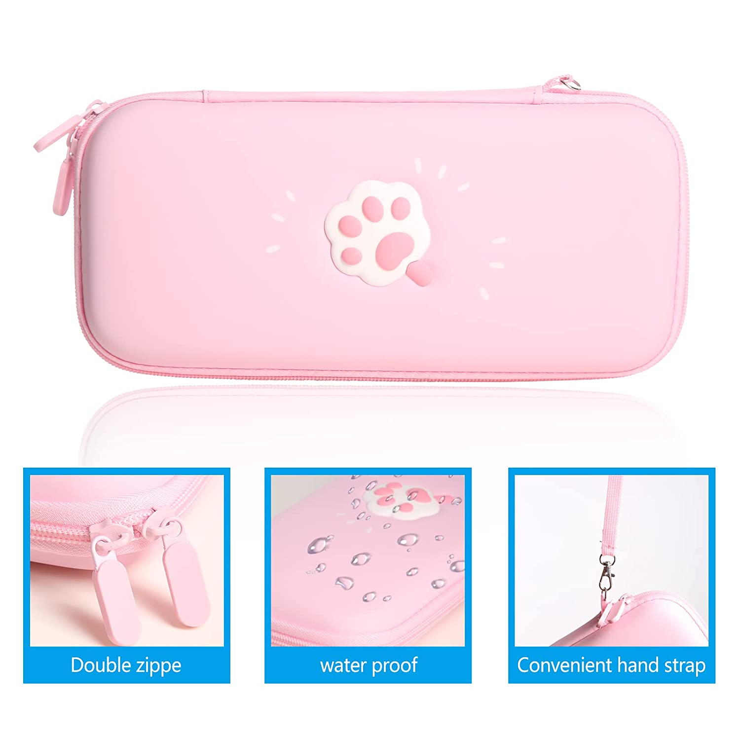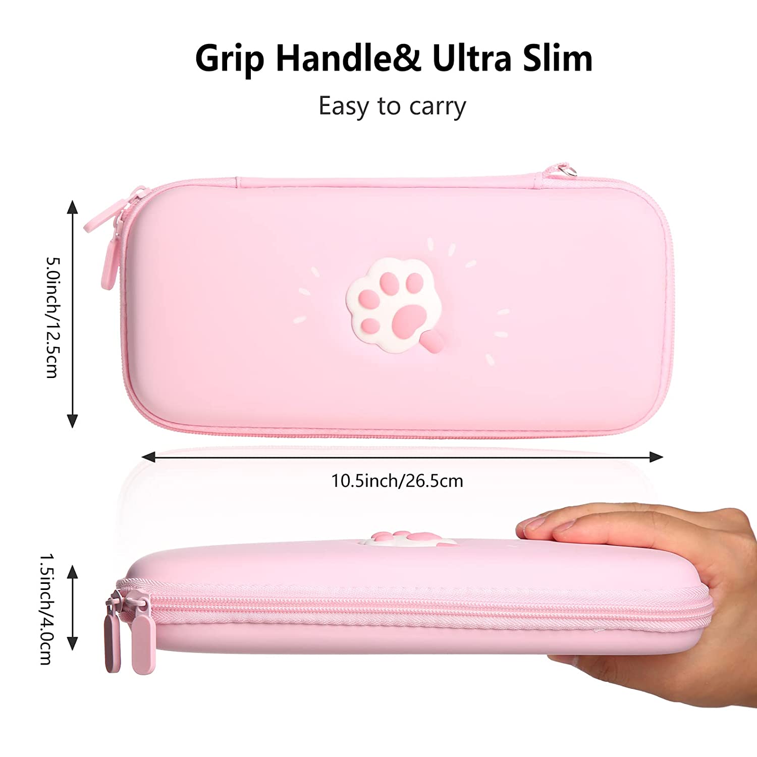 Carrying Case for Switch/Switch OLED Model (2021), Cute Cat Claw Hard Shell Portable Travel Case for Switch/Switch OLED Console & Accessories with 12 Game Card Slots & 4 Replaceable Thumb Grips Cap (P