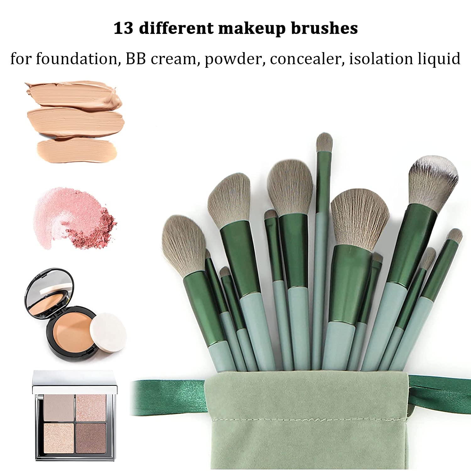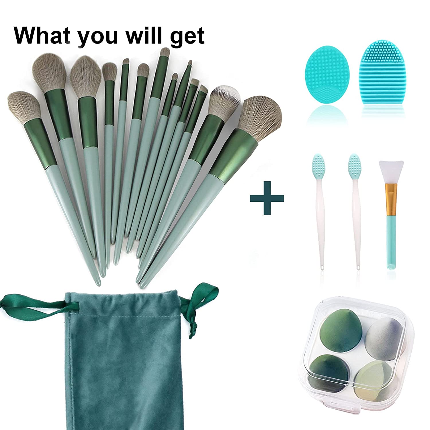 • Comprehensive Makeup Brush Set : This set includes 13 makeup brushes and a storage bag. In addition, we also prepare a silicone face-pack brush, a sponge egg set, and two silicone lip brush, a brush cleaning egg, and a silicone facial cleansing brush. This set is a good choice for beauty lovers.