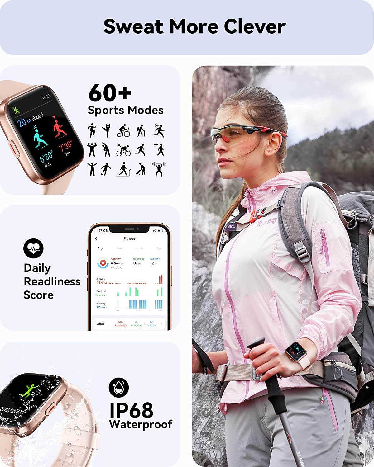 【60 Sports Modes and IP68 Water Resistance】With 60 built-in Sport modes and IP68 water resistance, fitness Tracker for women meets most sports enthusiasts` needs. Fitness tracker for women provides fitness data, including calories, steps, distance, and workout time, generate fitness report after a workout