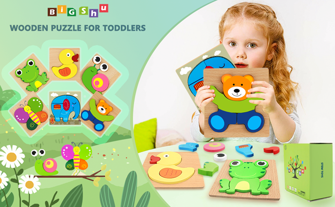 【HIGH-QUALITY WOODEN PUZZLES】Made of high-quality, environmental wood with non-toxic water-based paint and have no irritating smell. Smooth edges and easy-grip design allow toddlers to practice and play better. Fits wooden puzzles for toddlers 1-3 toys.