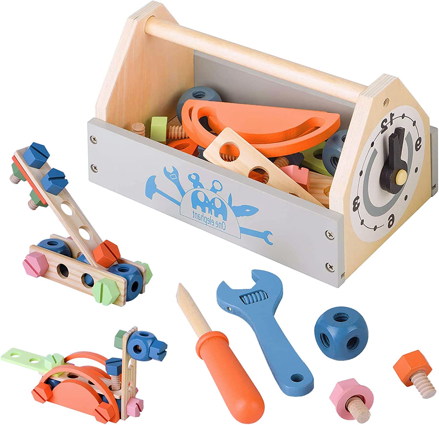 ⭐[Product Features]- Simulation tools, complete equipment, wooden toy wrench, ruler, hammer, screw, screwdriver, gear and so on. Children can experience the real fun of building by tapping, twisting, turning and measuring. Tools with different colors attract children's interest and improve creativity. Wooden toys.