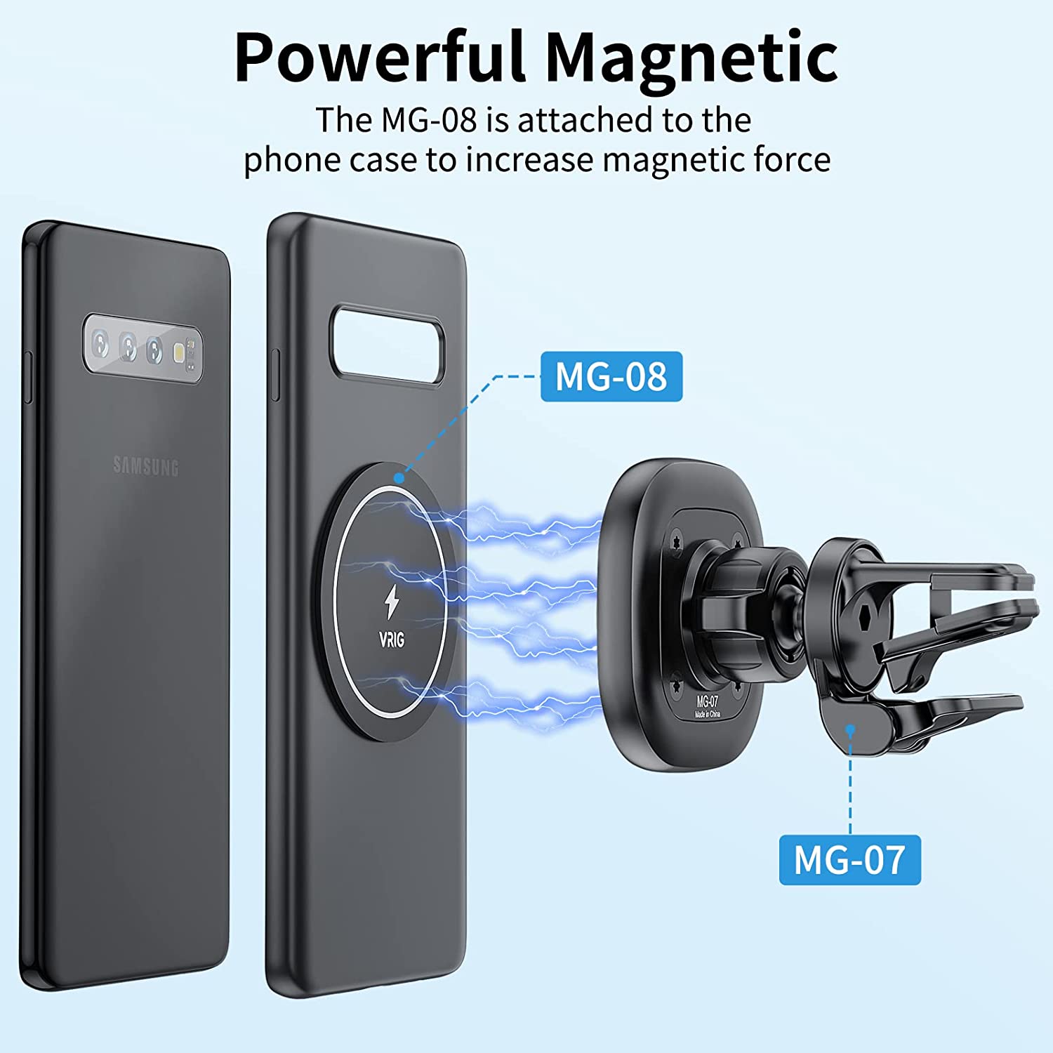 VRIG MG-05 Wireless Charging Magnetic Phone Holder for Car+Free Magnetic disc,Easily Install,15N Strong Magnets,Cell Phone Holder for Car,iPhone Car Holder Compatible with All Smartphones & Tablets