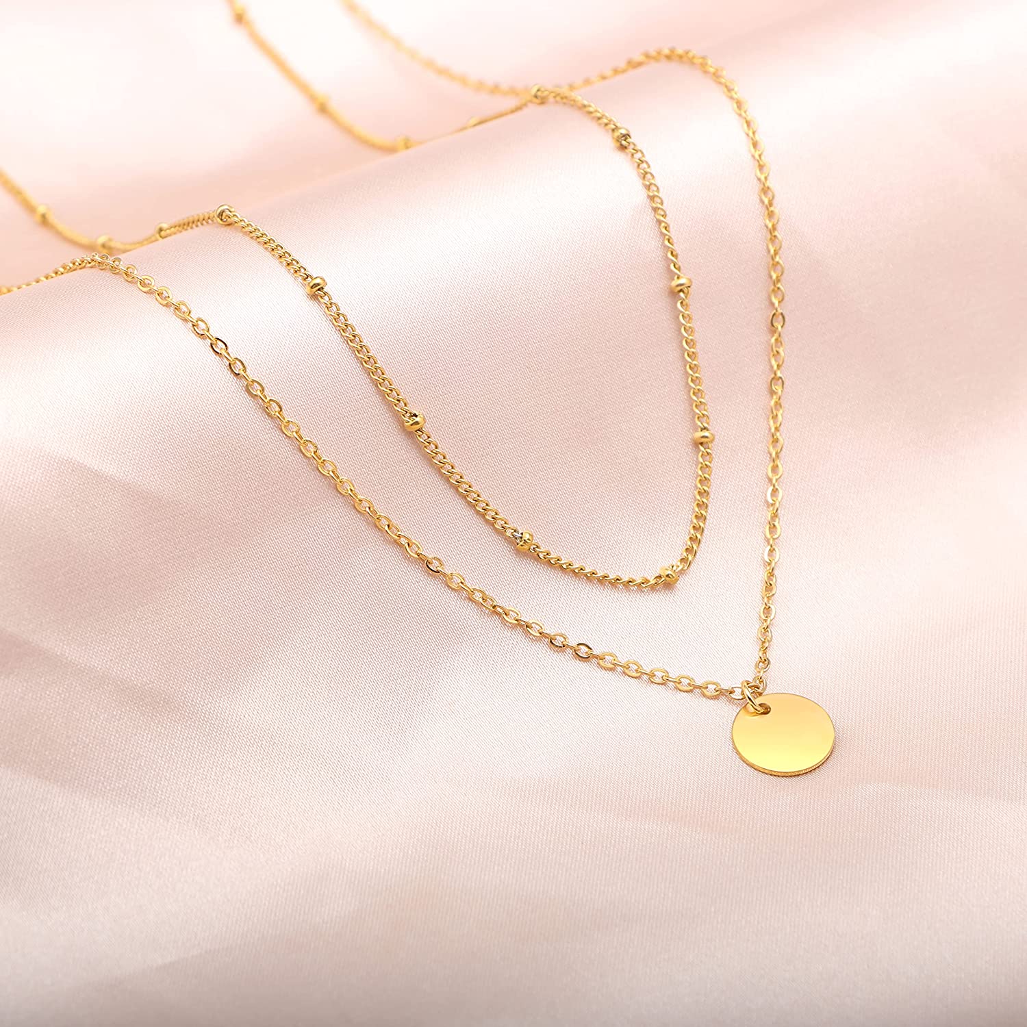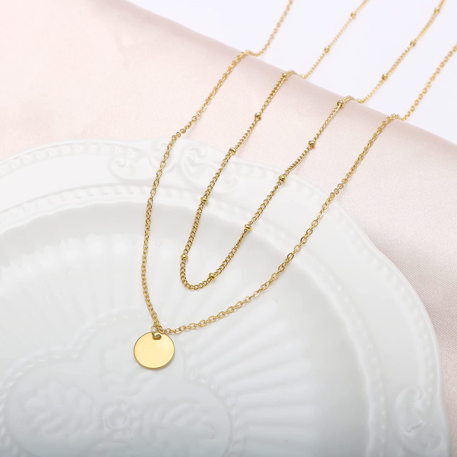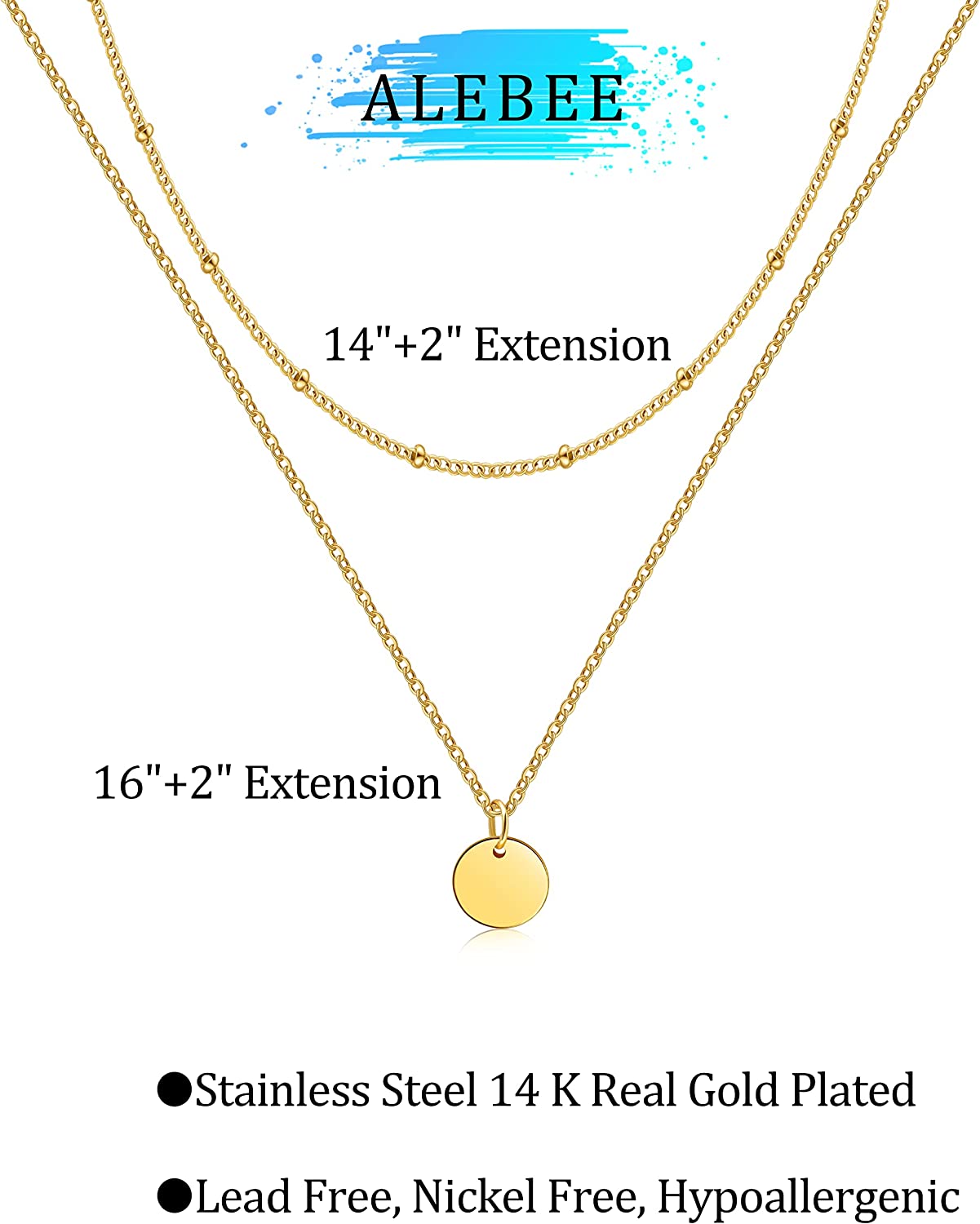 ALEBEE Dainty Layered Diamond Necklace for Women 14K Gold Plated Cute Tiny Diamond Necklace Wedding Jewelry for Bridesmaid Brides Layering Beaded Link Chain Jewelry Gifts for Her
