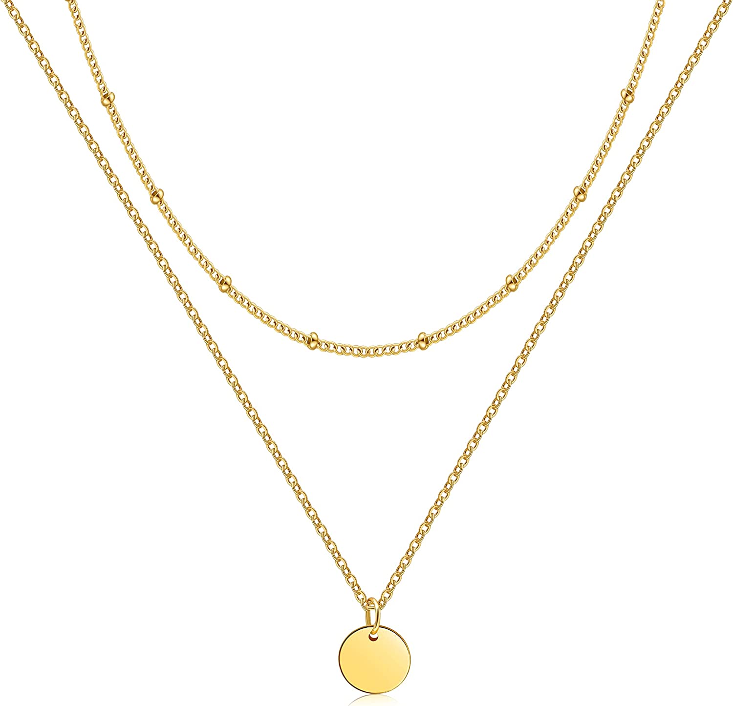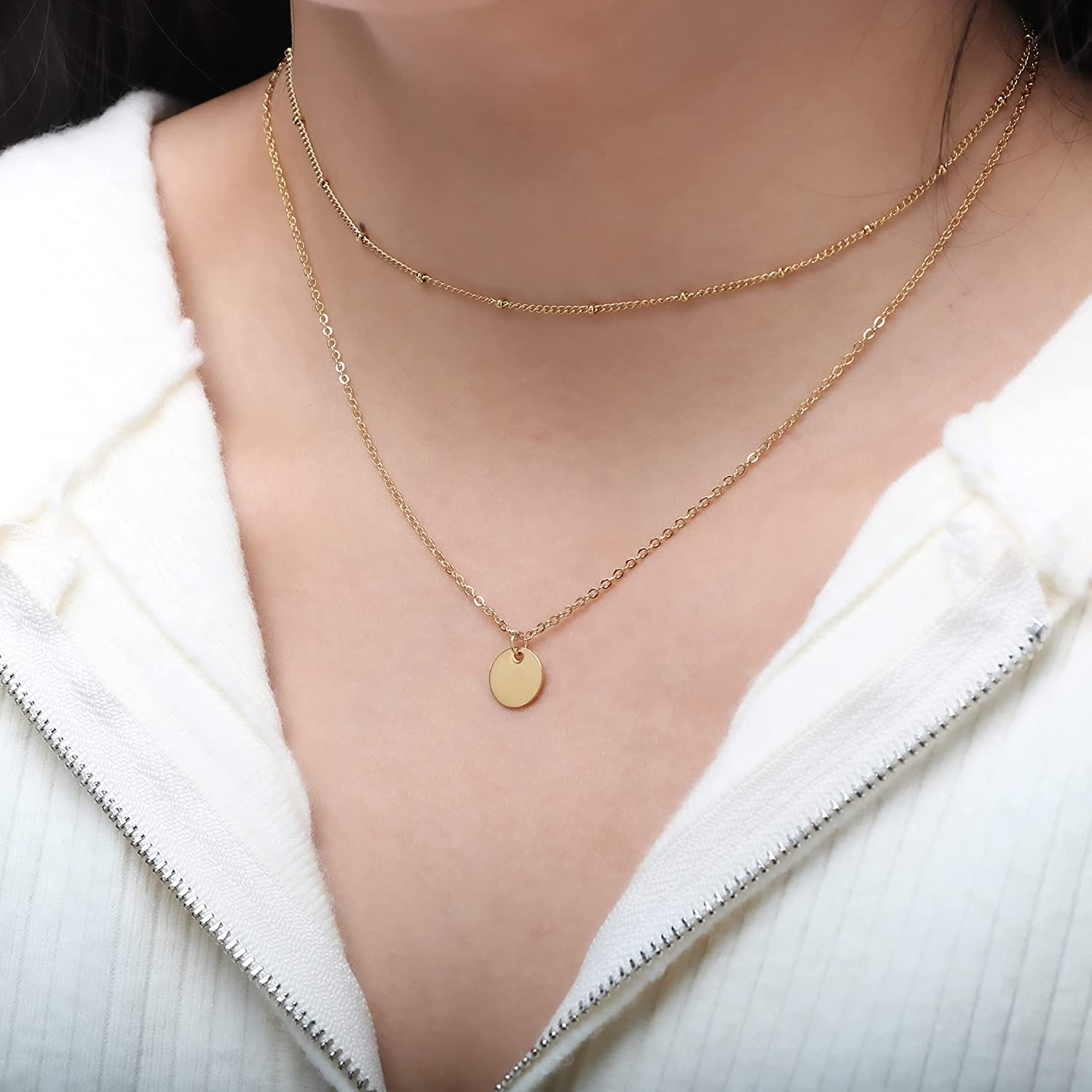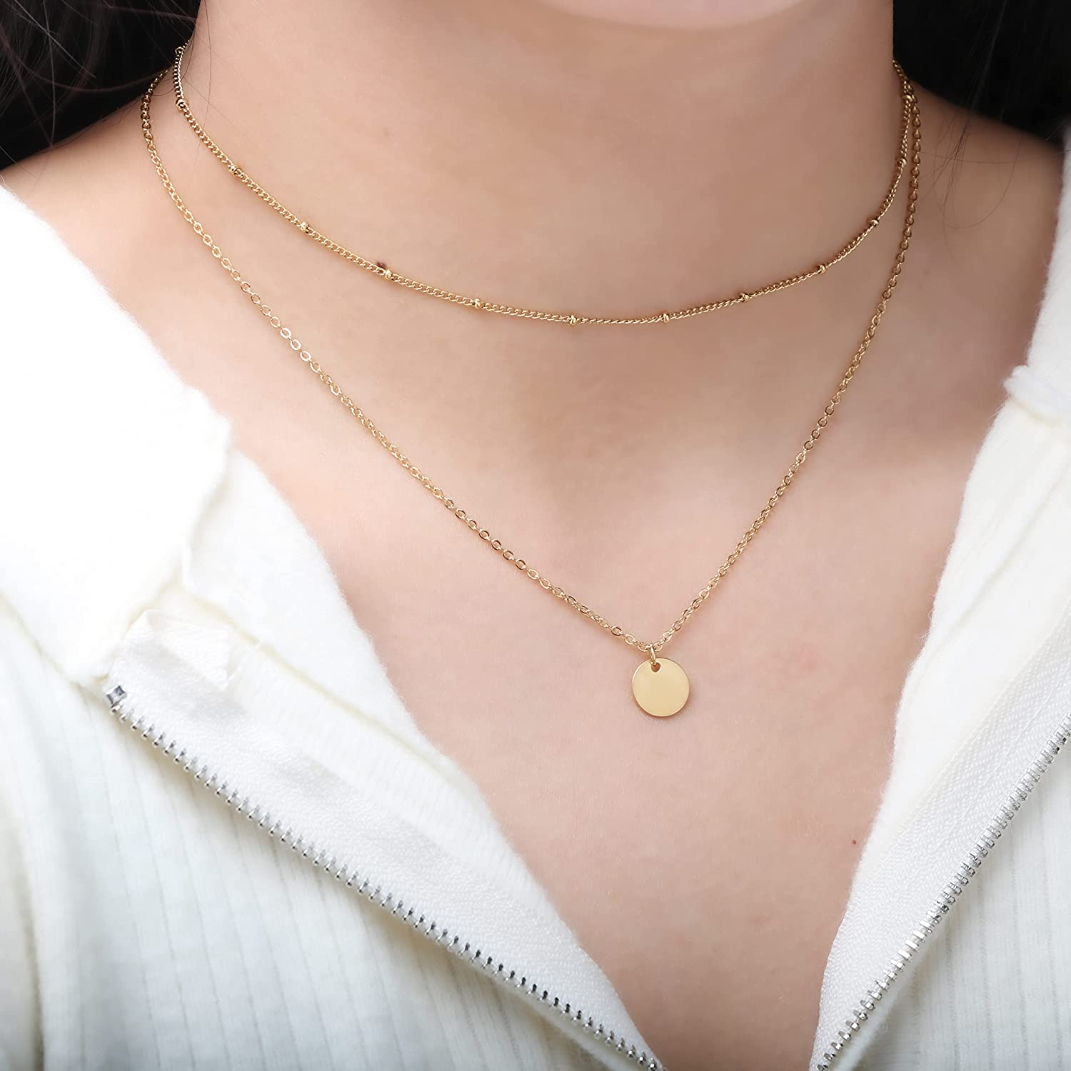 ALEBEE Dainty Layered Diamond Necklace for Women 14K Gold Plated Cute Tiny Diamond Necklace Wedding Jewelry for Bridesmaid Brides Layering Beaded Link Chain Jewelry Gifts for Her