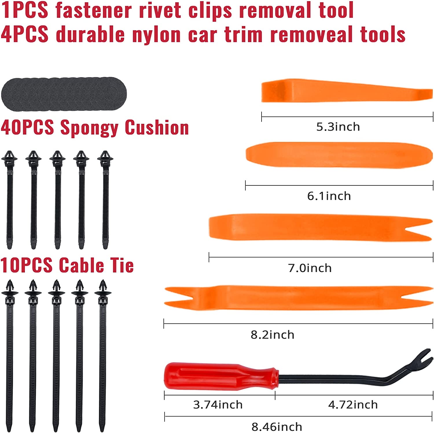 【Ergonomic Design】- Our auto trim tool set and trim auto clips adopts ergonomic design with super lightweight,easy handheld features which effectively effort saving for various interior and exterior car trimming in the shortest time.