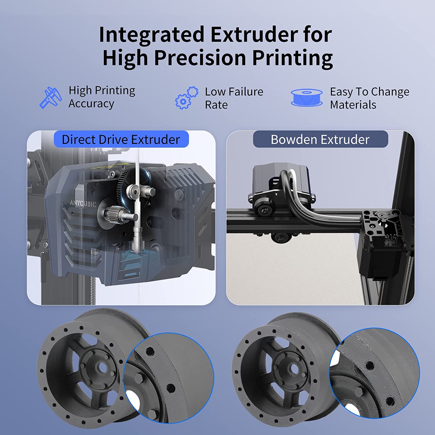 High Precision Printing: The Direct Drive Extruder can restore the form of the model to the greatest extent. Moreover, Anycubic Kobra Neo is easier to replace filaments and has a lower failure rate.