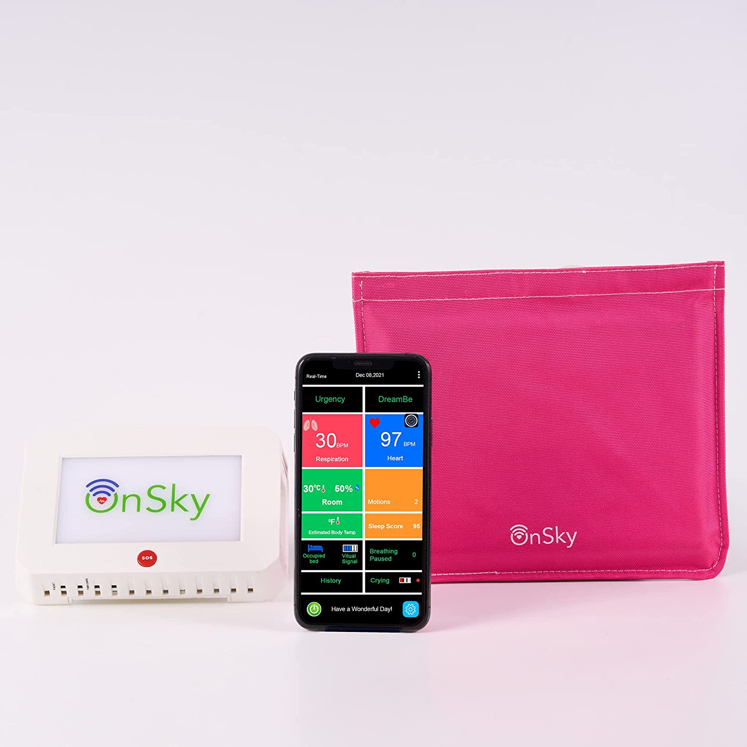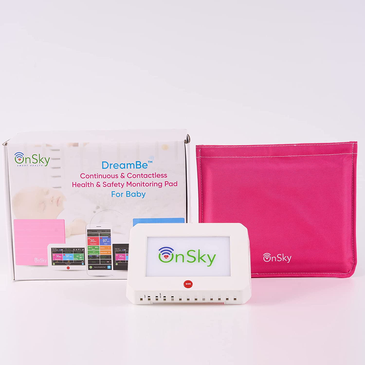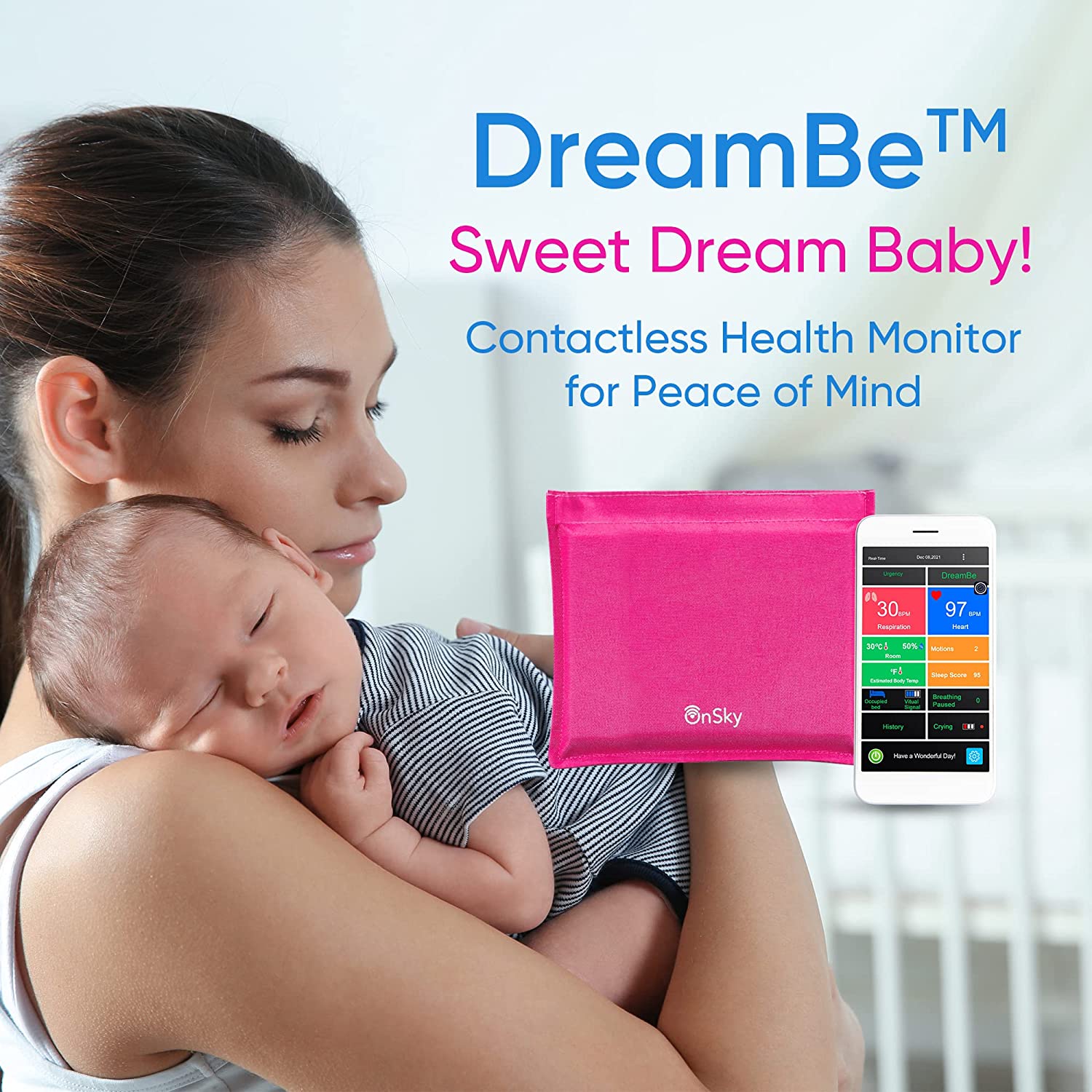 DreamBe-1 Pink by OnSky Contactless Smart Baby Breathing Monitor, Realtime Heart Rate and Sleep Tracker–Monitor Baby Anywhere, Anytime –WiFi, Motion and Crying Notifications, Room Temp -Urgency Alert
