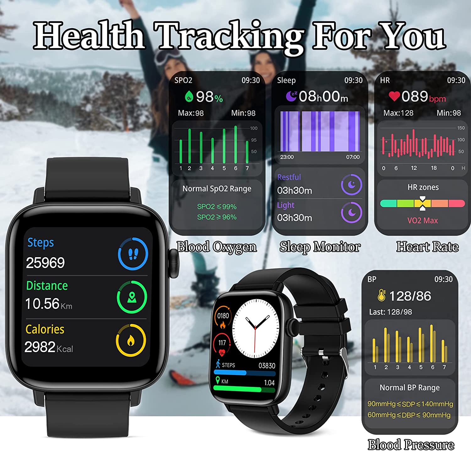 • ⛹️【25 Sports Modes Activity Tracker】The fitness watch meet your various sports styles (walking, running, skipping, cycling, football, yoga, etc). Allow you to get the real-time stats during your workouts on the smart watch. Such as steps, distance and calories burned. You can also connect it to smartphone's GPS to track all your workout routes and distance traveled during exercise.