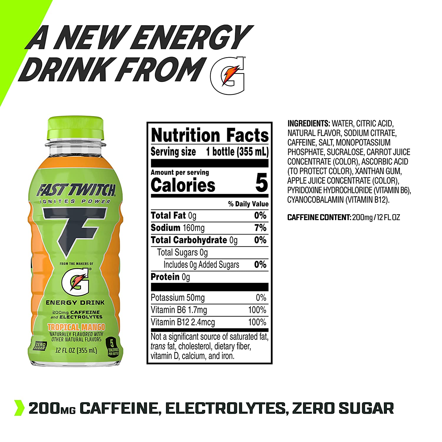 Introducing Fast Twitch, a new energy drink from Gatorade. Developed with 200mg of caffeine to help athletes focus the mind and power the body for athletic performance.