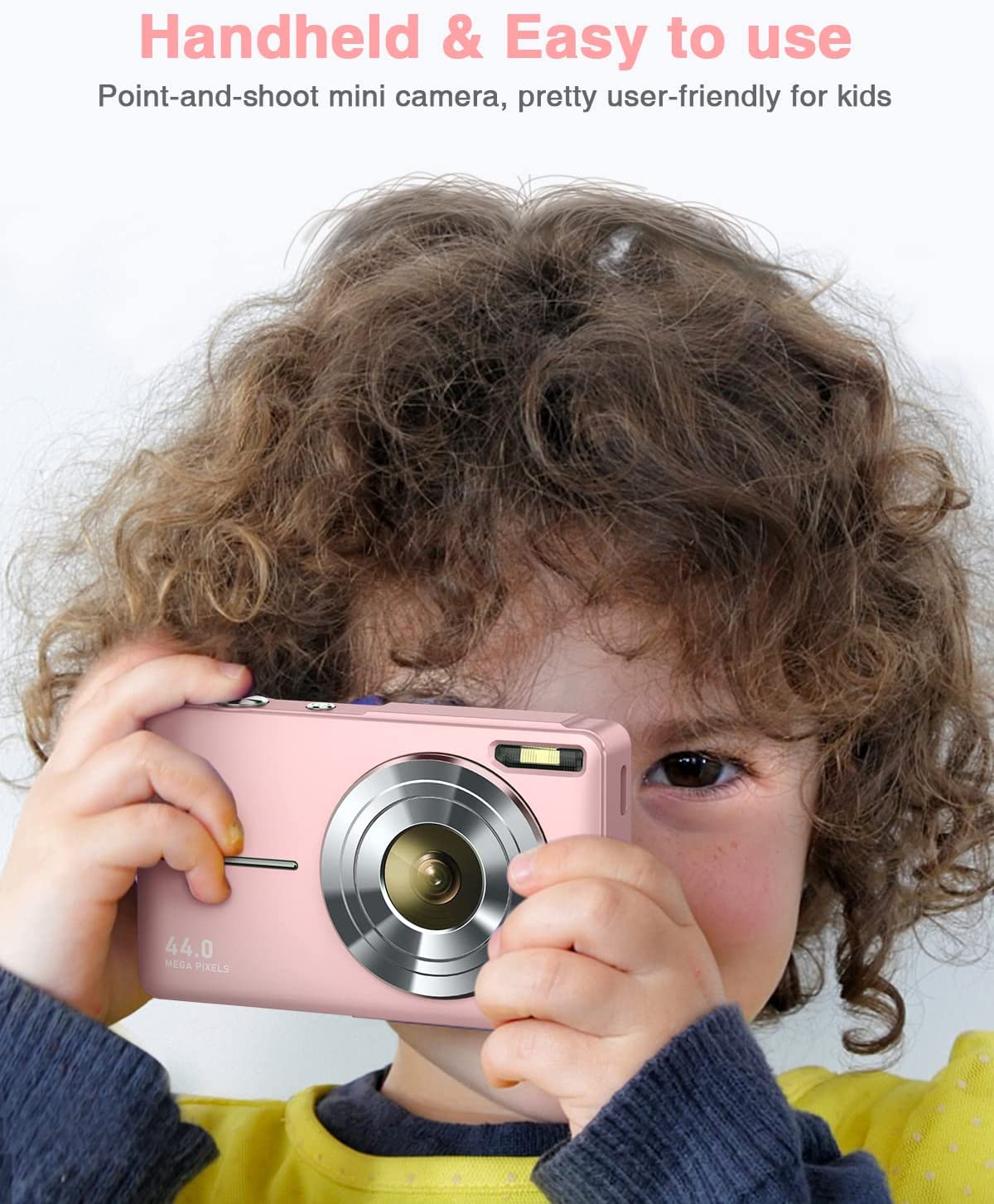 Digital Camera for Kids, Lecran 1080P 44MP Kids Camera with 32GB Card Point and Shoot Camera with 16X Zoom, Compact Portable Cameras Christmas Birthday Gift for Children Kids Teens Girl Boy(Pink)