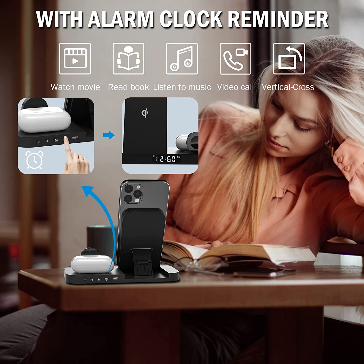 - 3-in-1 fast wireless charger: an integrated charging station for multiple devices. The charging station is compatible with Apple Watch+AirPods+iPhone. The 3-in-1 charging station can be one Apple watch charging station, one mobile phone charging station and one AirPods charging station, and is compatible with 99% of mobile phones that support wireless charging.