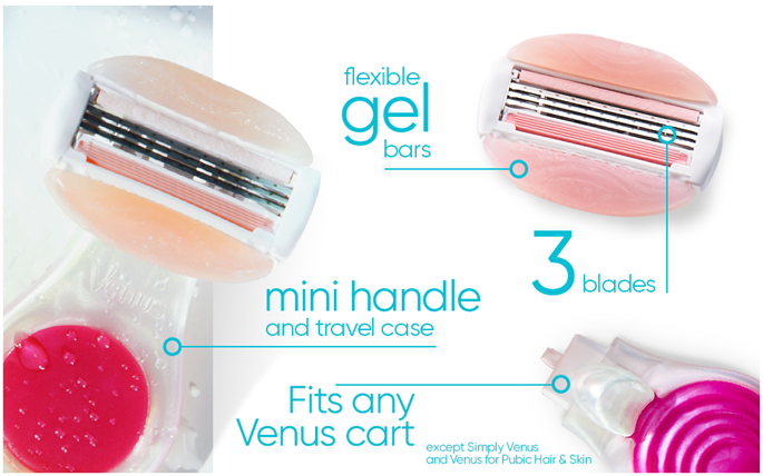 COMPACT & PORTABLE: With a mini handle and travel case for on-the-go use. Easily fits into your purse or travel bag. Any Venus blade refill fits any Venus razor handle (except Simply Venus and Venus Pubic Hair Razor)