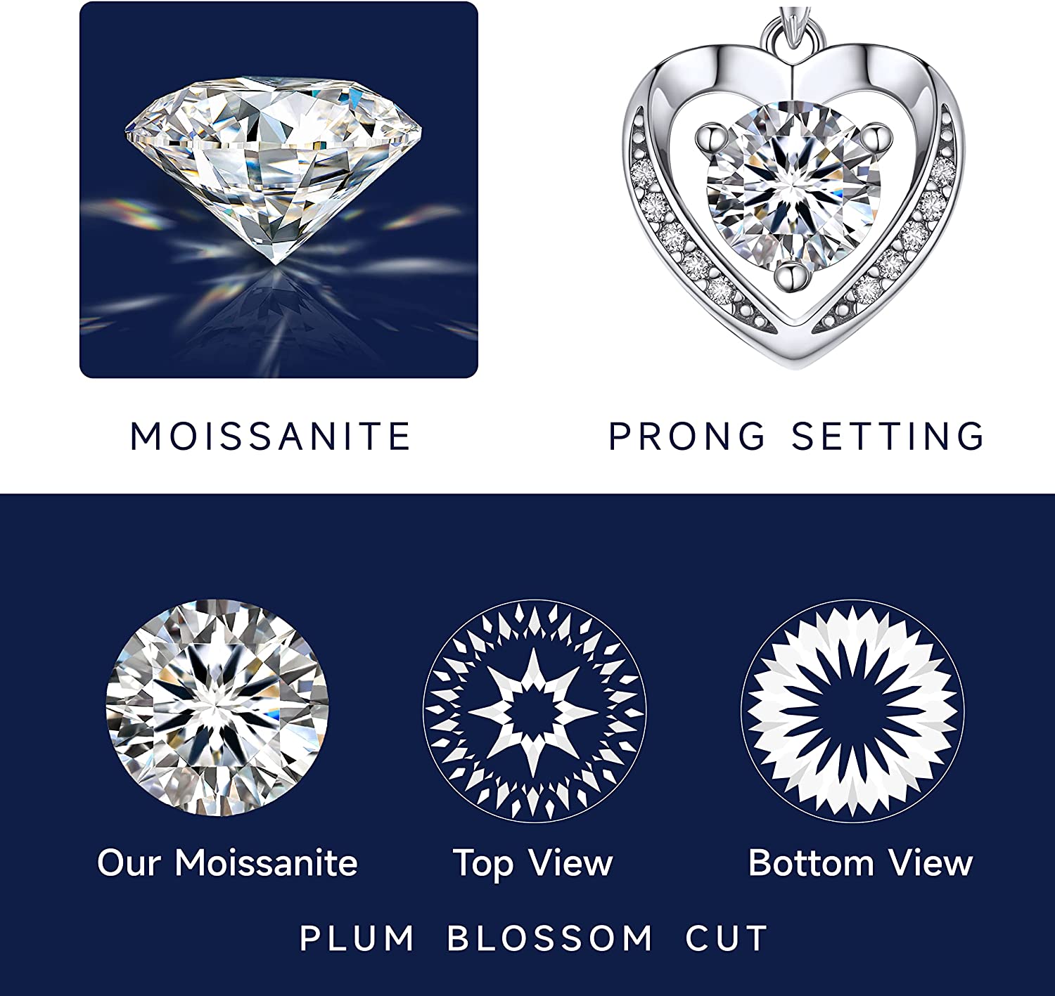 ?【Excellent Craft】➣ This moissanite necklace for women is adopted upgraded plum blossom cut and excellent polished craft, more sparkling and clean. Each stone has been carefully selected, all of which are D color VVS1 clarity. And our moissanite has passed the GRA moissanite certificate, which is traceable and with a unique code.