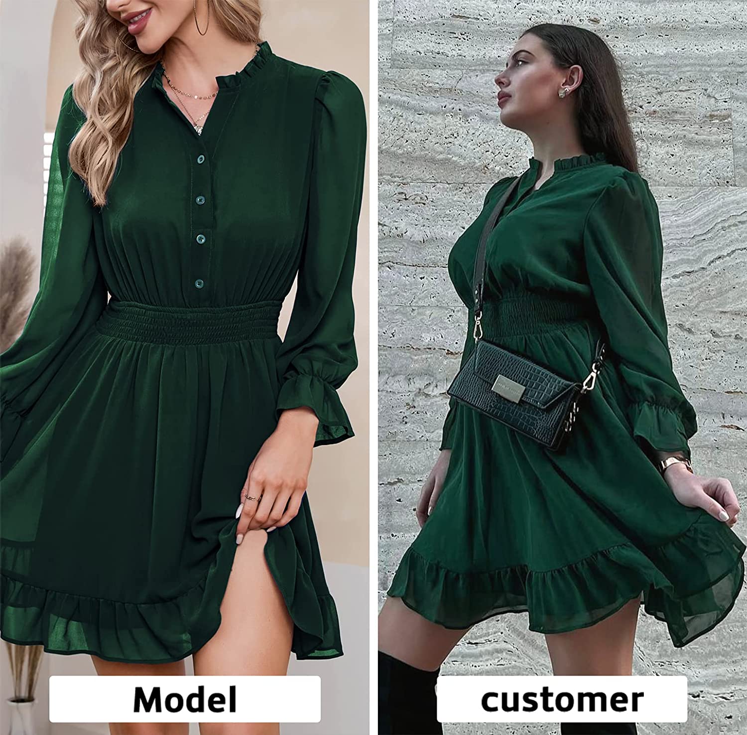 Feature: The mini dress is designed with gathered neckline and button. Plus, the sheer puff sleeve and the sheer back design adds a bit of charm and sexy to the dress. The dress cinches at the waist with its smocked waistband to accentuate your curve.