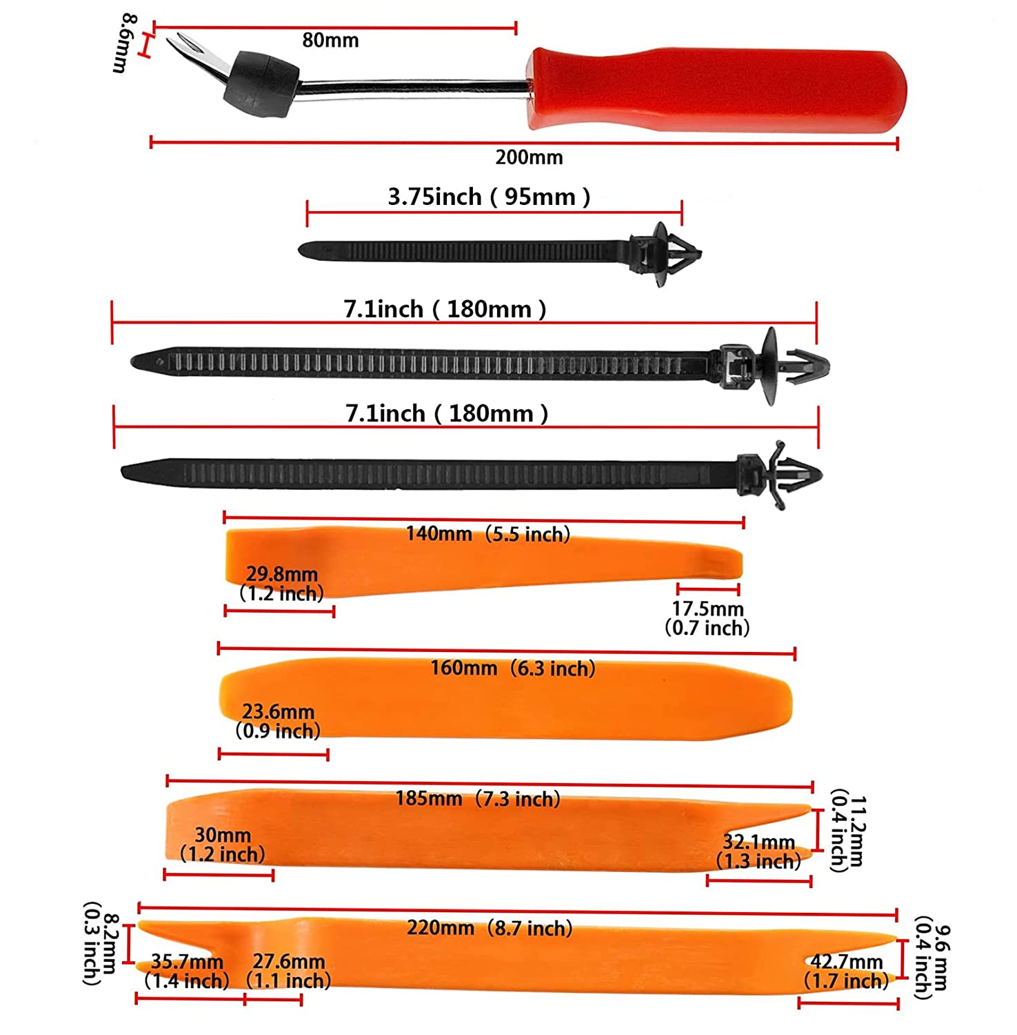 【HIGH QUALITY CLIPS AUTOMOTIVE】--The plastic rivets and trim removal tool are made of premium nylon material can be used for a long time. Durability will not damage or break easily during use.