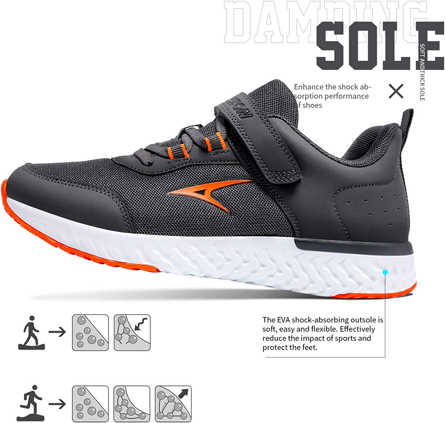 【Rubber Midsole】- Boy athletic shoes have great of anti-slip, not easy to slip. Anti-collision shoes head protecting feet hurt from hard object.