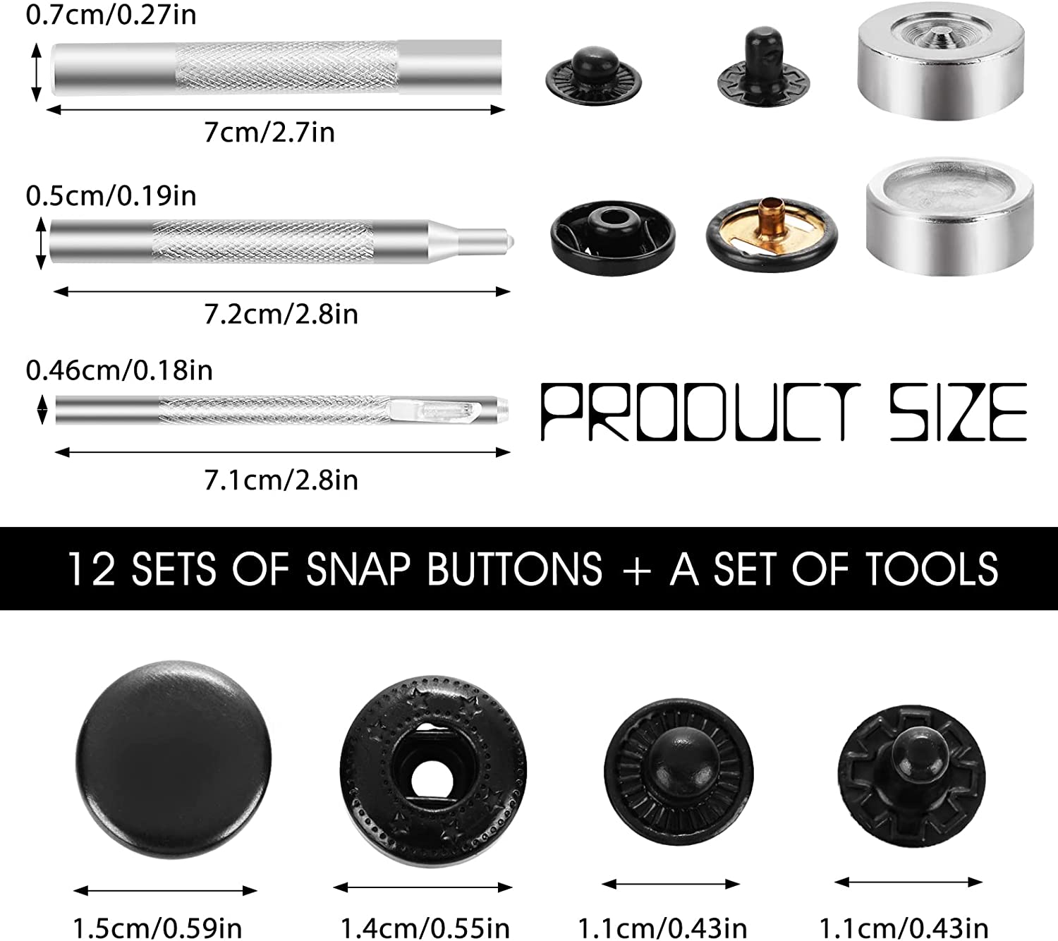 Package Content: You will receive the leather snaps and fasteners kit, including 12 sets of snap fasteners and 4 sets of installation tools, the snaps will be packed in a sturdy and portable plastic transparent box for easy storage and use, enough quantity to meet your daily needs.