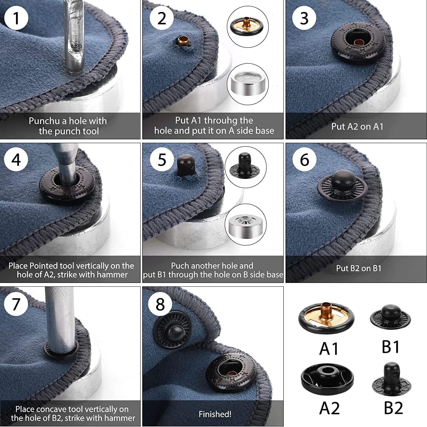 Simple Installation: This button snap kit is very simple and easy to use and install, you just need to follow the use method in the picture, put the mounting stick on the place you need to install and tap, then install the snap, beginners can also easily learn to use.