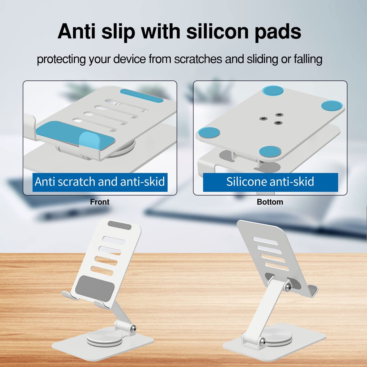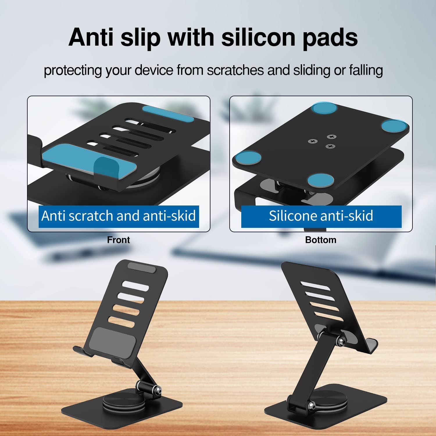 [Multiple Angle Adjustment] : The height and angle of this 360 rotation phone stand can be adjusted, this foldable phone stand provides you comfortable view and reduce neck & back strain