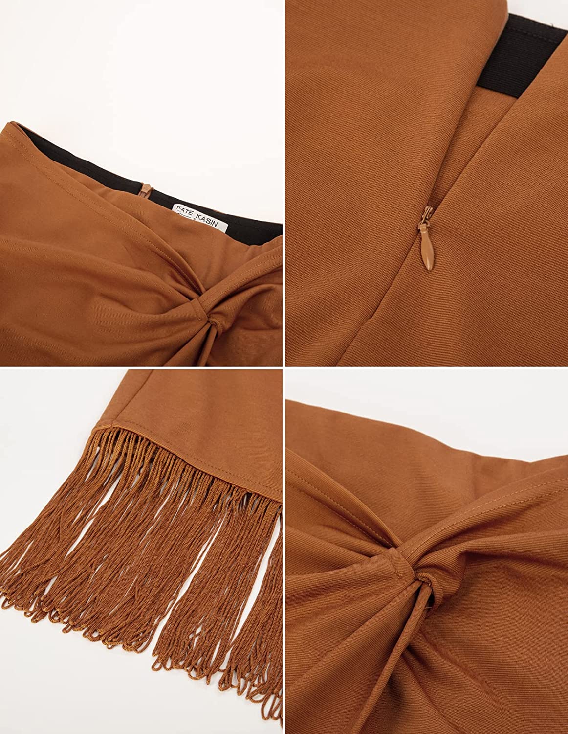 • 【SPECIAL DESIGN】Asymmetrical wrap front with concealed zipper in the back. Boho fringe hem mini flapper skirt high waisted well elastic pencil skirt tassel solid bodycon midi skirt.