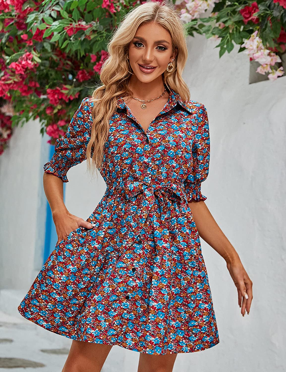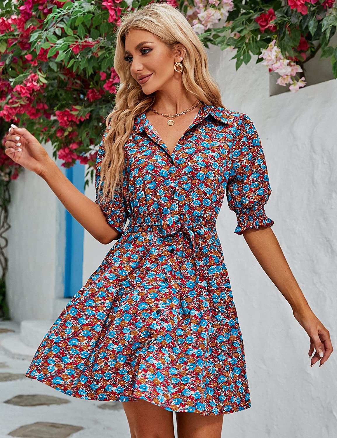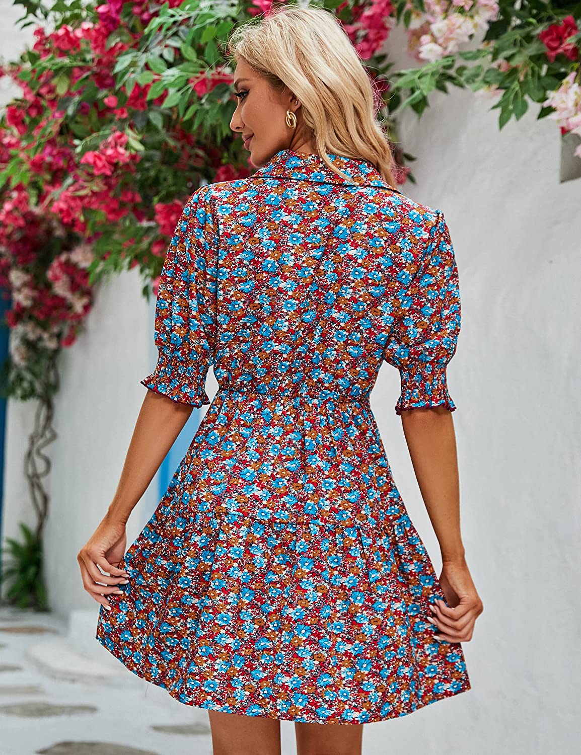 • Feature: Womens summer dresses feature square neck, puff short sleeve with elastic cuffs which also can be sexy off shoulder, stretchy smocked bust design, elastic empire waist with cute ruffle, tie open back, 2 pockets, floral print, above knee length, a line baby doll silhouette, releaxed fit.
