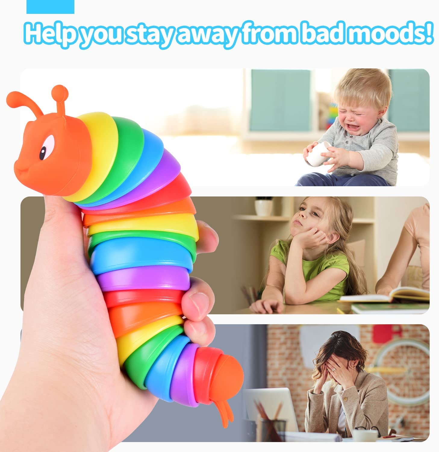Relaxing and Satisfying Fidget Toys: Designed for people who are bored at work or can't concentrate. The flexible slug toy can be twisted into various shapes in your hands to strengthen hand exercise and finger dexterity, suitable for people who use computers for long periods of time, so you can spend hours without realizing it, no longer dull and boring!