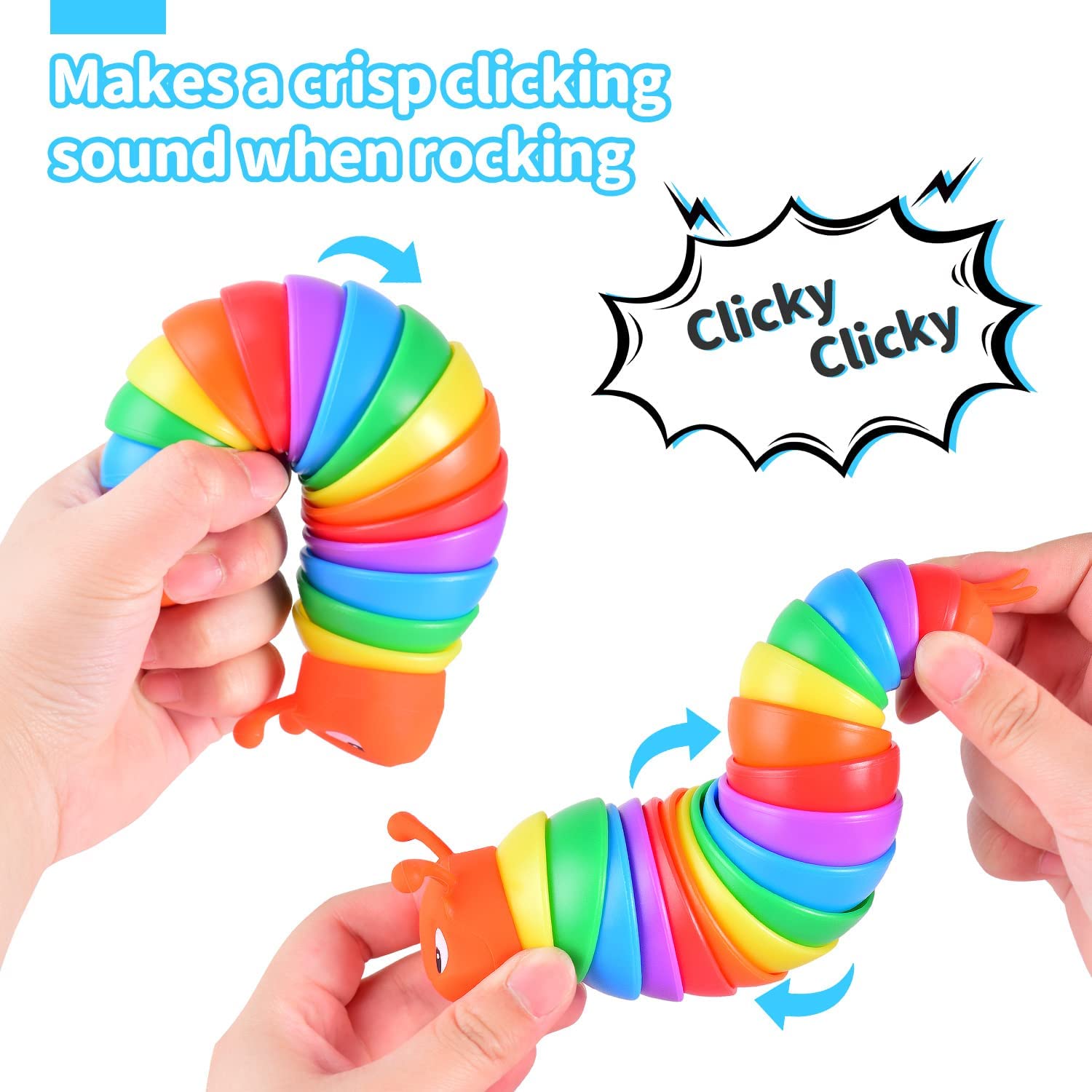 Fidget Slug Toy, Autism Sensory Toys for Autistic Children 3-12 Years Old Kids Toddler, 3D Printed Rainbow Cute Worm Fidgit with Anxiety Relief Therapy, Finger Bug Gift for Girls Boys Birthday