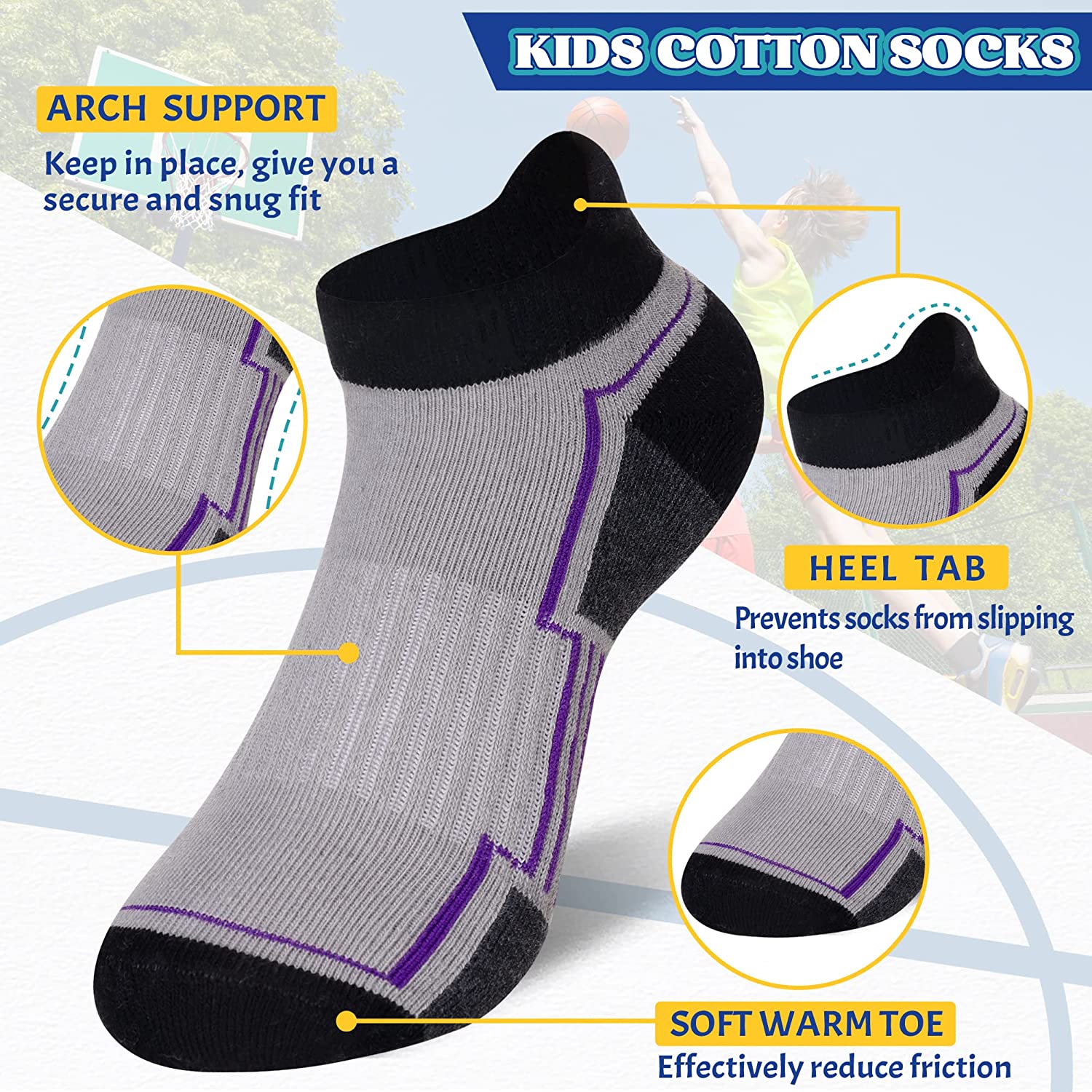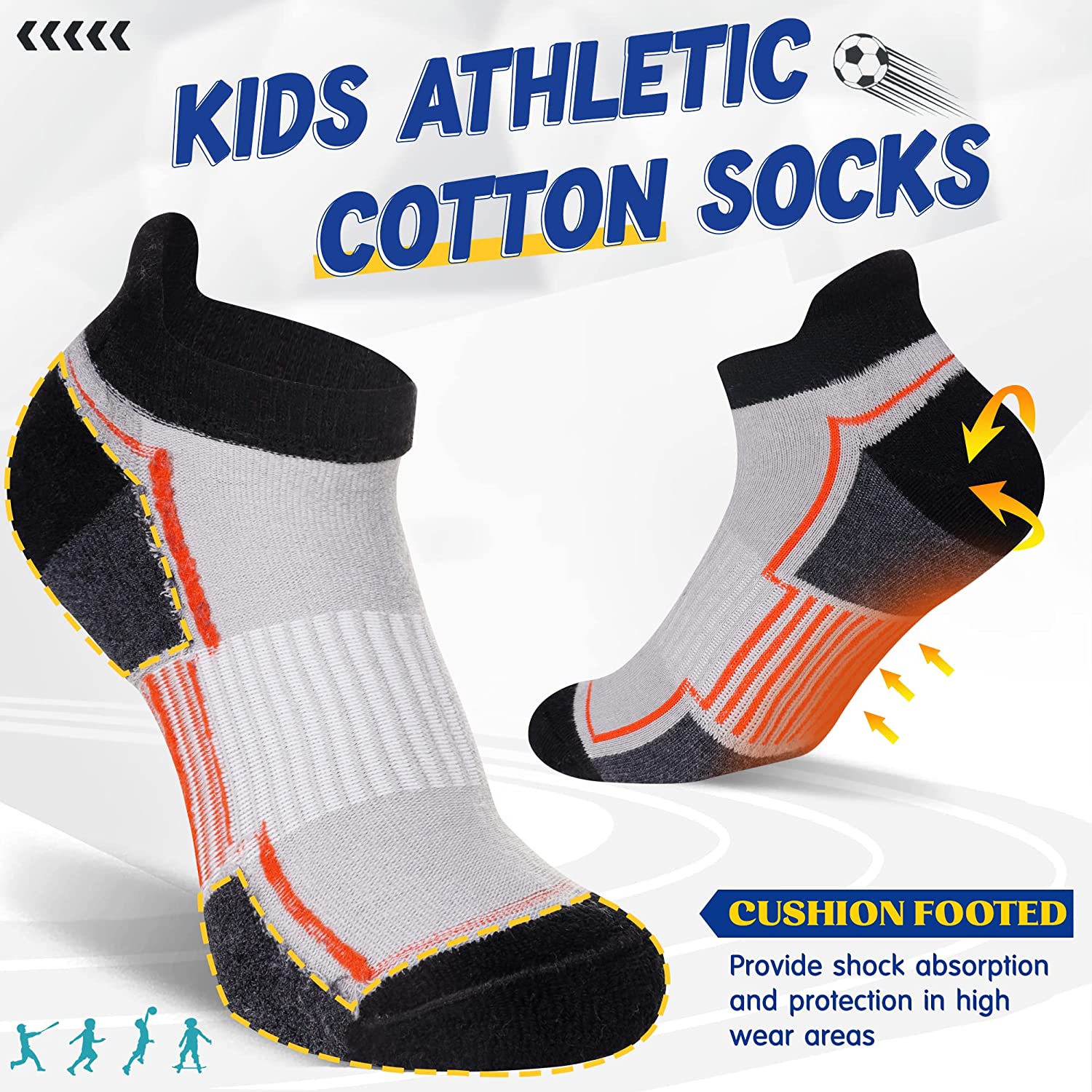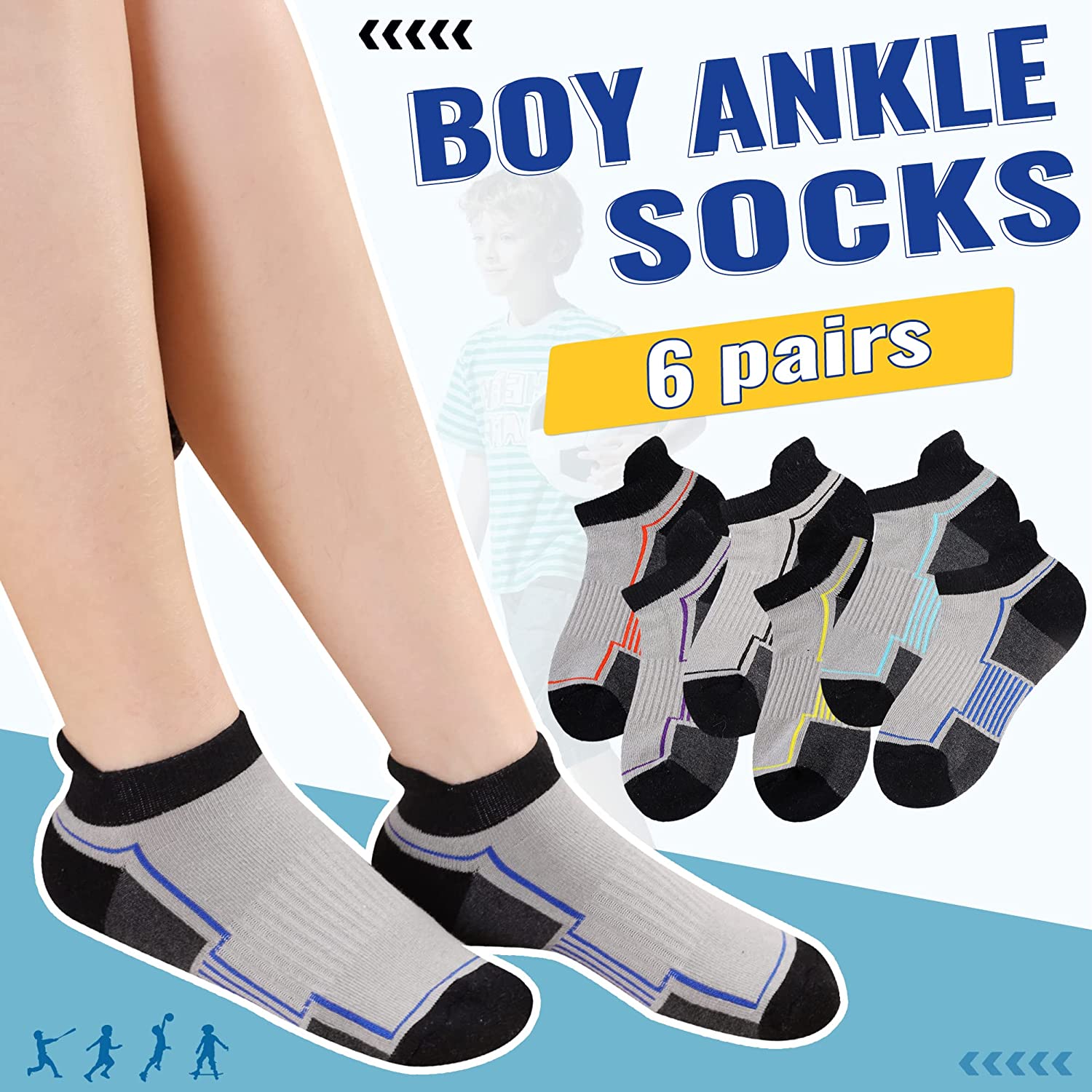 DoSmart Boys Socks 6 Pairs Sport Ankle Athletic Sock Kids Cotton Half Cushioned Low Cut Socks For Little Big Kids
