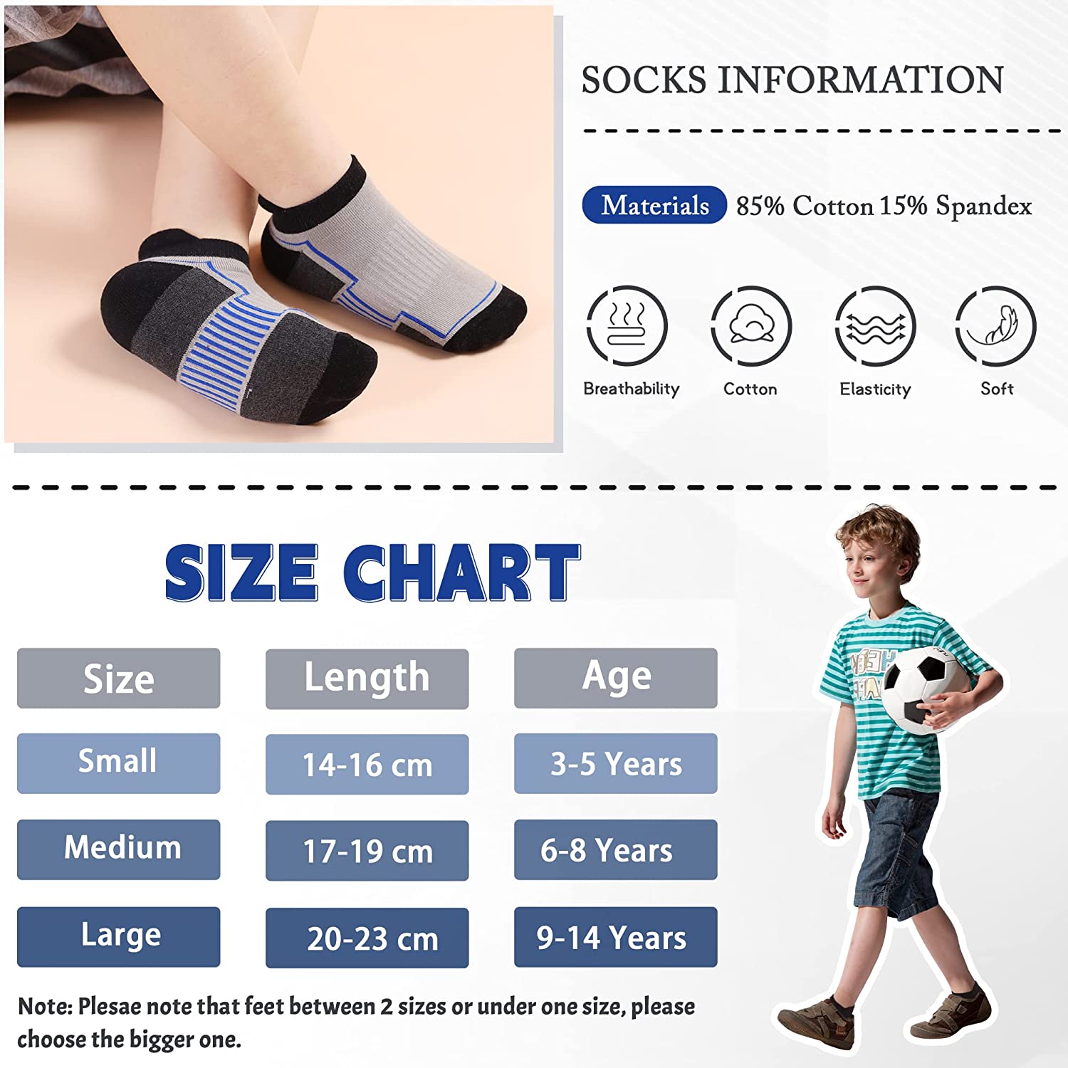 • 3 SIZE - Boys no show socks have 3 sizes to choose, 3-5 Years, 6-8 Years, 9-14 years. Perfect for everyday wear, you can wear these boy cotton socks as sporting socks, baseball socks, soccer socks, basketball socks, school socks or other outdoor socks.