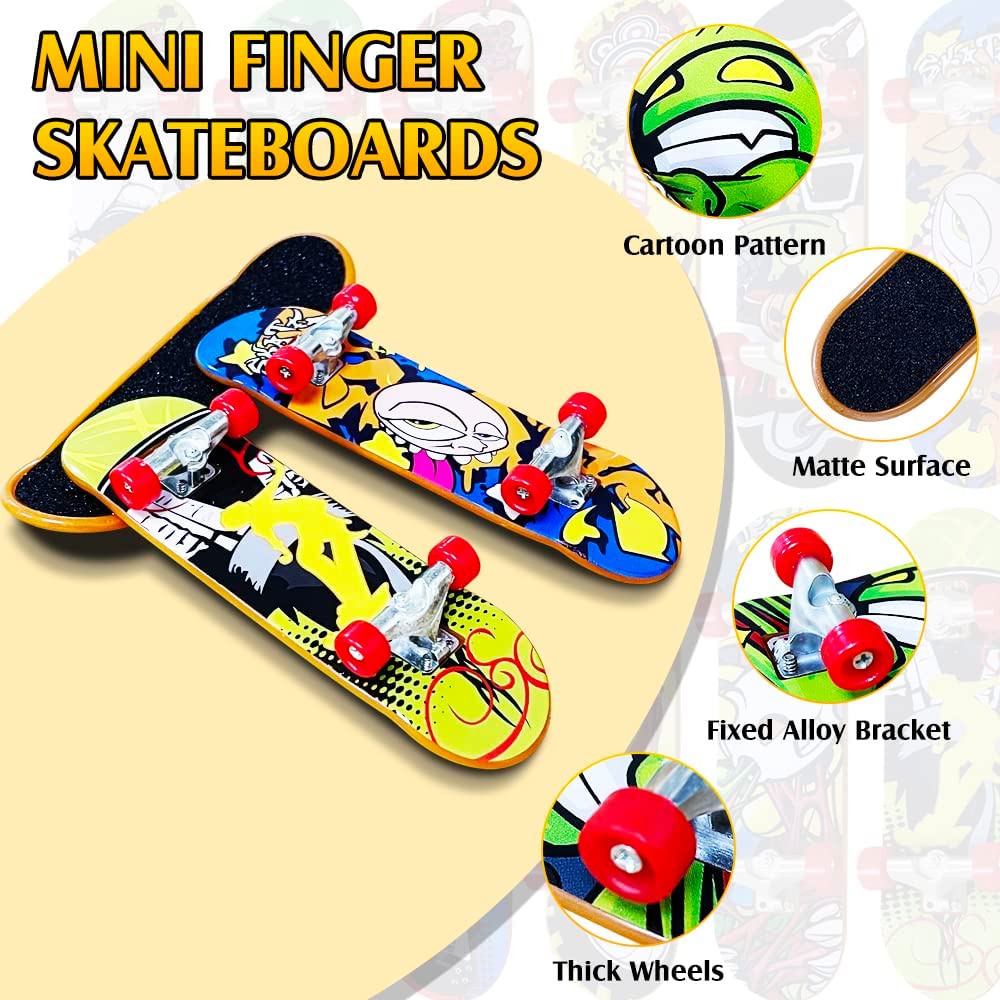 ☆ ATTRACTIVE CARTOON DESIGN: Packed with 12 mini finger skateboards, each designed with different cartoon patterns and various colors, this amount can be easily met for your daily use, and you can also share it with your friends, classmates or family. Different skateboard scenes will give your fingers different pleasures.