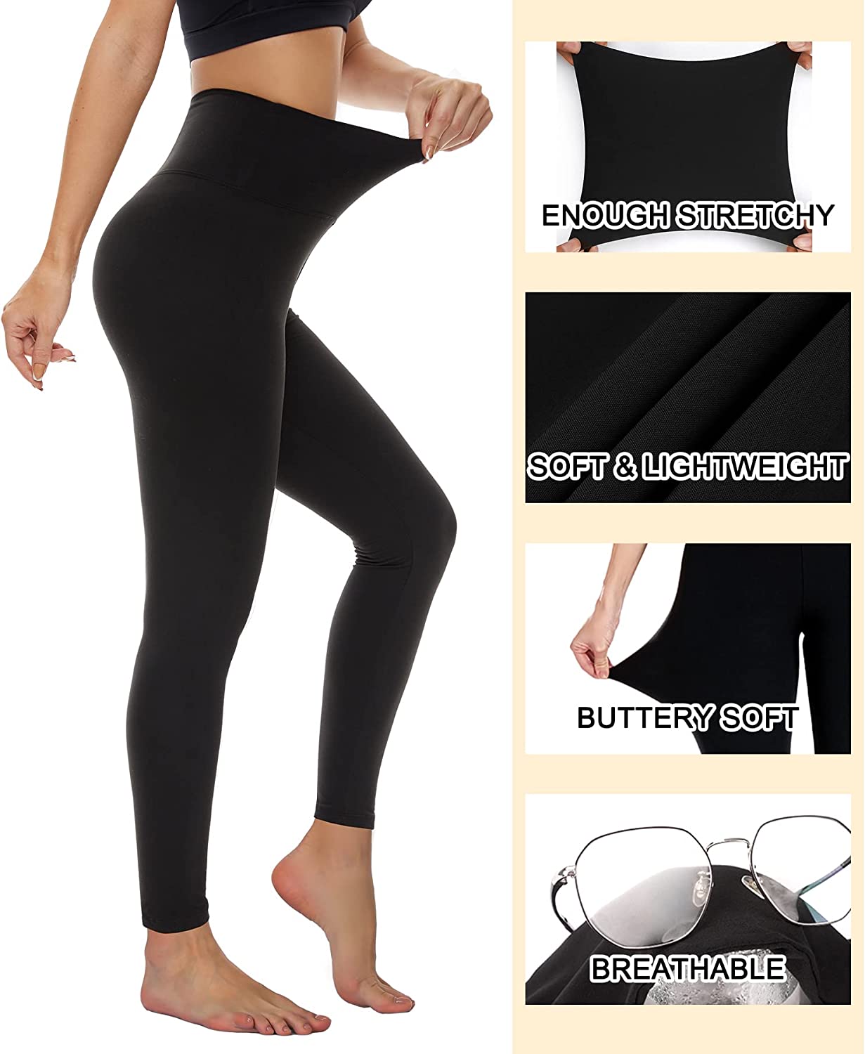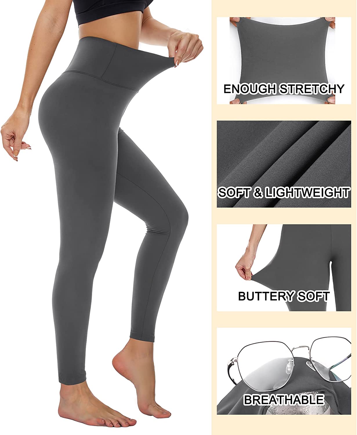 Refeel Thick High Waist Yoga Pants with Pockets, Tummy Control Workout Running Yoga Leggings for Women
