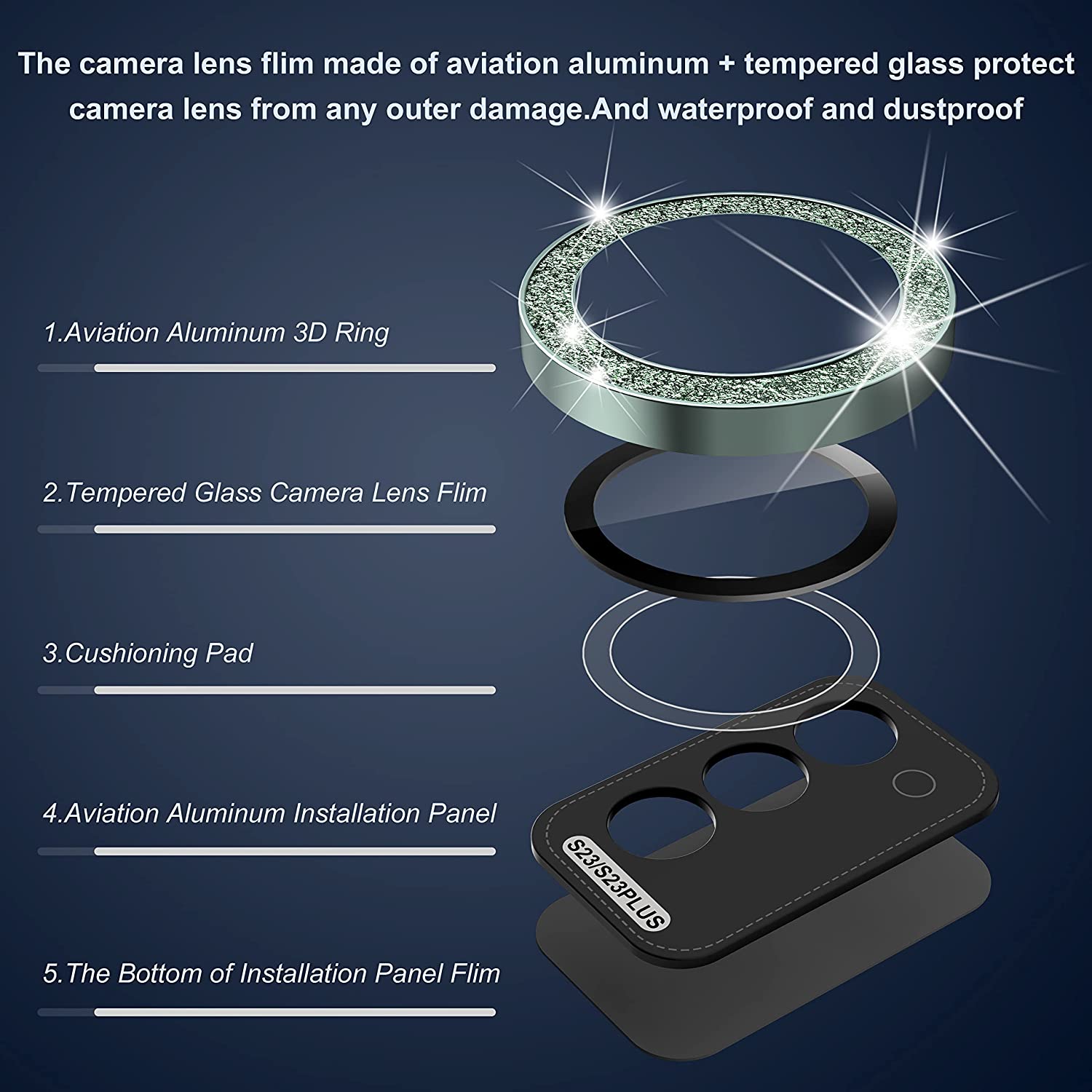 Suoman [3+3 PCS] for Samsung Galaxy S23/ S23 Plus Camera Lens Protector, Premium Tempered Glass Glitter Camera Lens Protector for Samsung Galaxy S23/ S23+ [Glitter Diamonds] - Bling Green