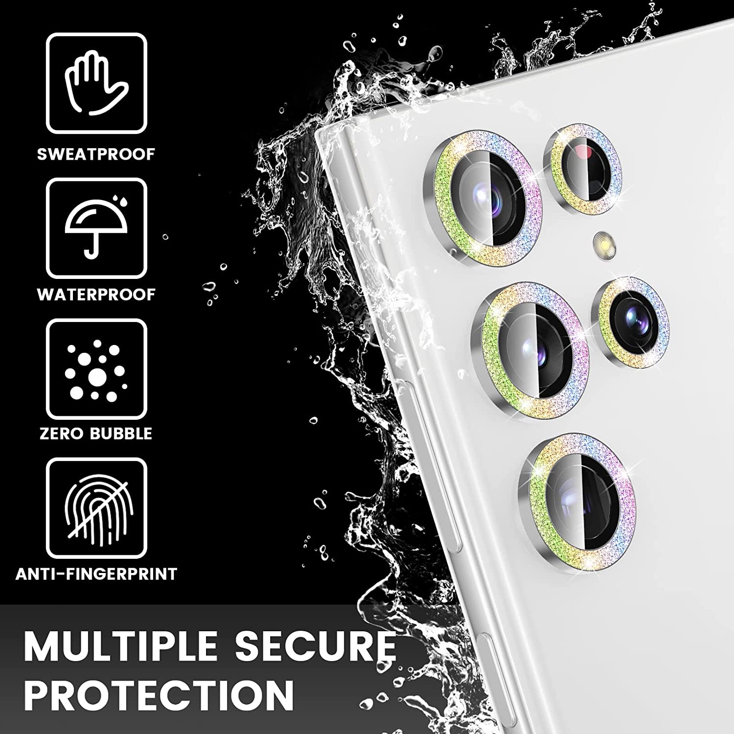 Goton for Samsung Galaxy S23 Ultra Camera Lens Protector, HD Glass Metal Lens Screen Protector Cover For Galaxy S23 Ultra 5G Accessories Glitter Colorful