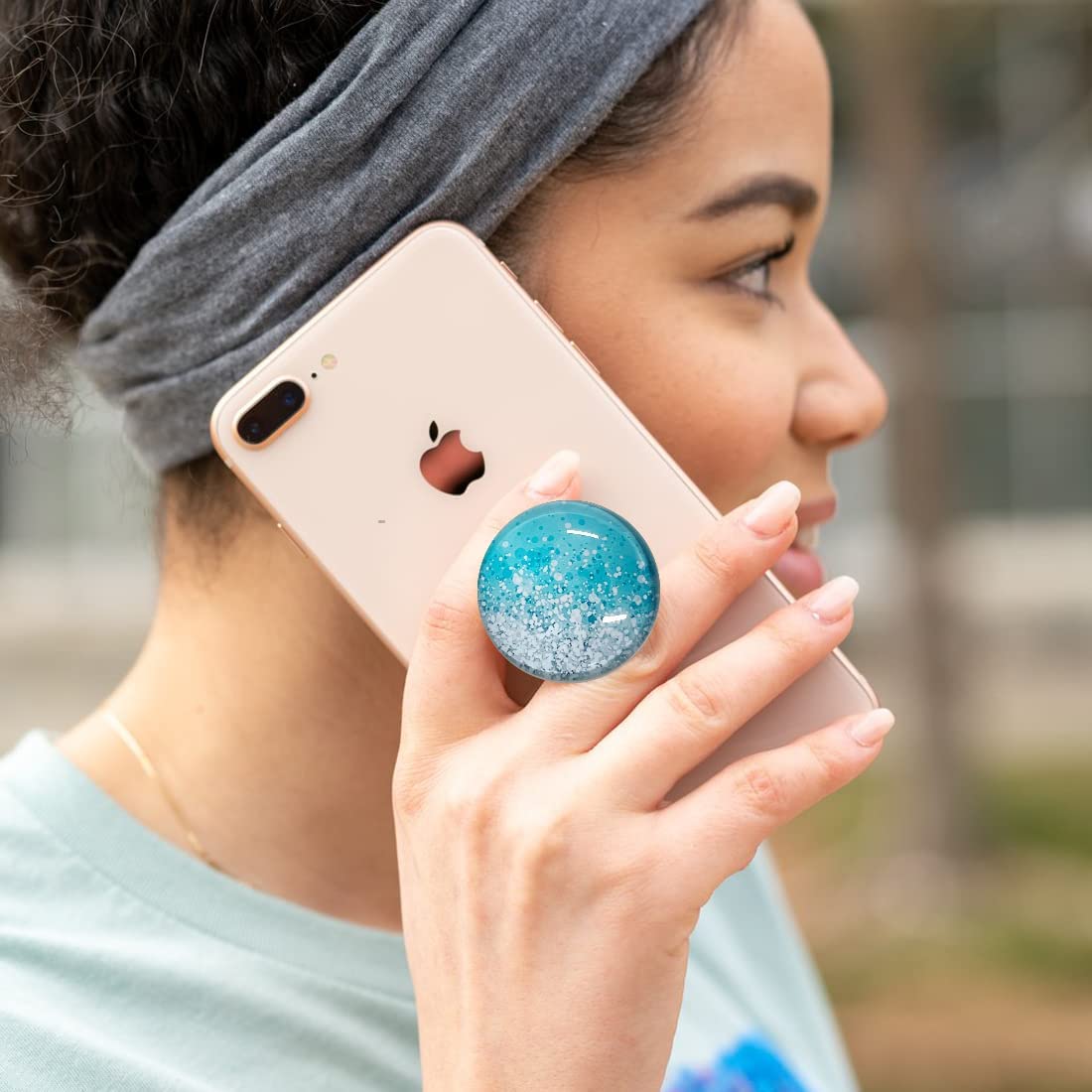 WUYULB Clear Crystal Collapsible Expandiing Mobile Phone Grip Stand Holder for Smartphones and Tablets Cell Phone Accessory (Blue Sliver Glitter)