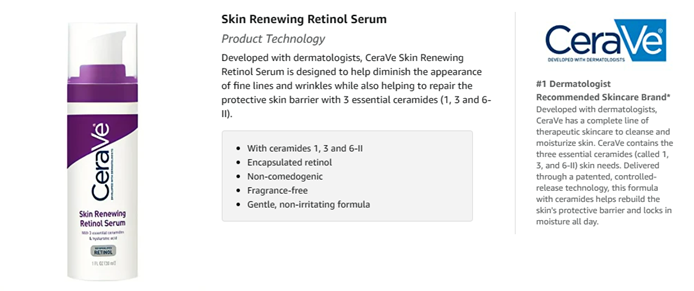 Developed with dermatologists, CeraVe Skin Renewing Retinol Serum is designed to help diminish the appearance of fine lines and wrinkles while also helping to repair the protective skin barrier with 3 essential ceramides (1, 3 and 6-II). This anti-aging retinol serum for fine lines is a gentle, yet effective daily retinol serum that is ideal for all skin types.