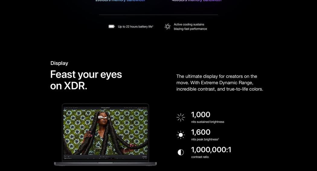 BEAUTIFUL PRO DISPLAY — The 14.2-inch Liquid Retina XDR display features Extreme Dynamic Range, over 1000 nits of brightness for stunning HDR content, and pro reference modes for doing your best work on the go.