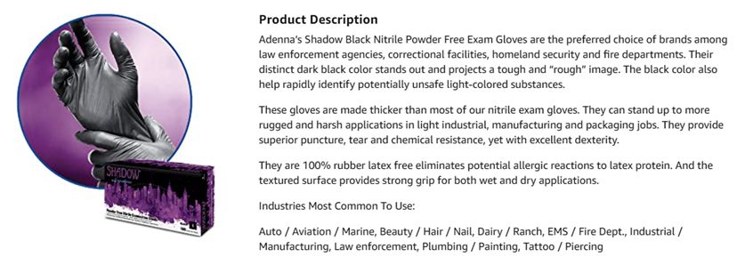 Adenna Shadow 6 mil Nitrile Powder Free Exam Gloves (Black, X-Small) Box of 99