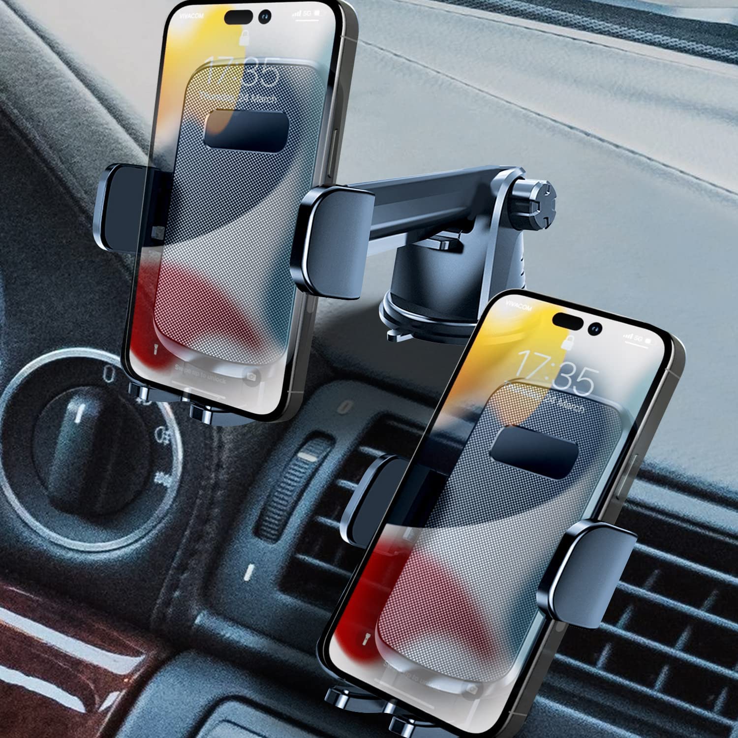 【Easy to Operate】The phone mount for car is easy to operate and can be operated by one hand. Press the button on the back of the car mount to open the clip with one click, and push the clip with one hand after placing the phone. This phone holder for car is suitable for 4-7 inch mobile phones, including all mobile phones with cases.