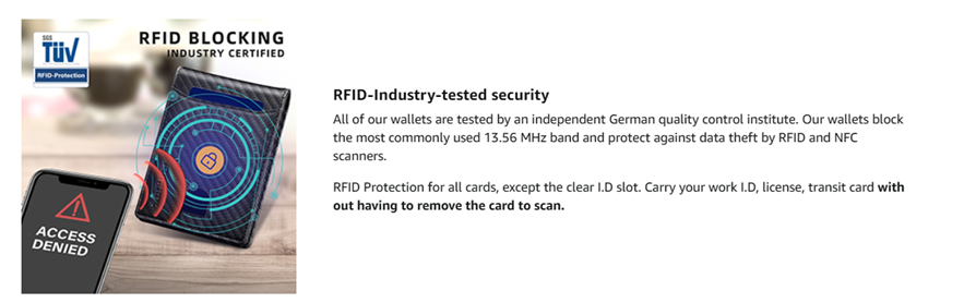 Rfid Blocking Protection-This rfid wallet for men is tested by an independent German quality control institute, specifically to block 13.56 MHz or higher RFID signals and protect against data theft by RFID scanners.