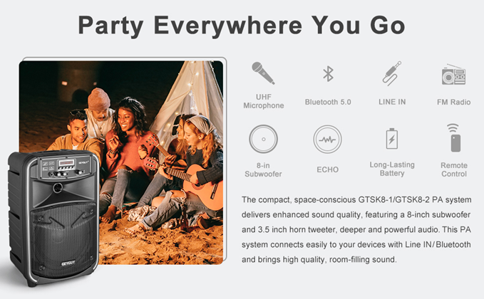 Yes, the True Wireless Stereo (TWS) function allows you to pair two GTSK8-1/GTSK8-2 speakers at the same time for even more powerful real stereo sound.