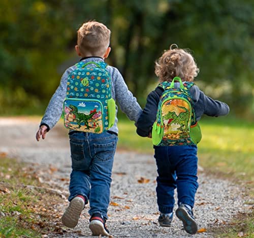 ⭐【Magic Sequins Kids Backpack】: Reversible sparkly sequins with two different dinosaur patterns on front pocket by swiping the sequins. It is cute and attractive for little boys in kindergarten or elementary preschool ages from 4-10 years old.