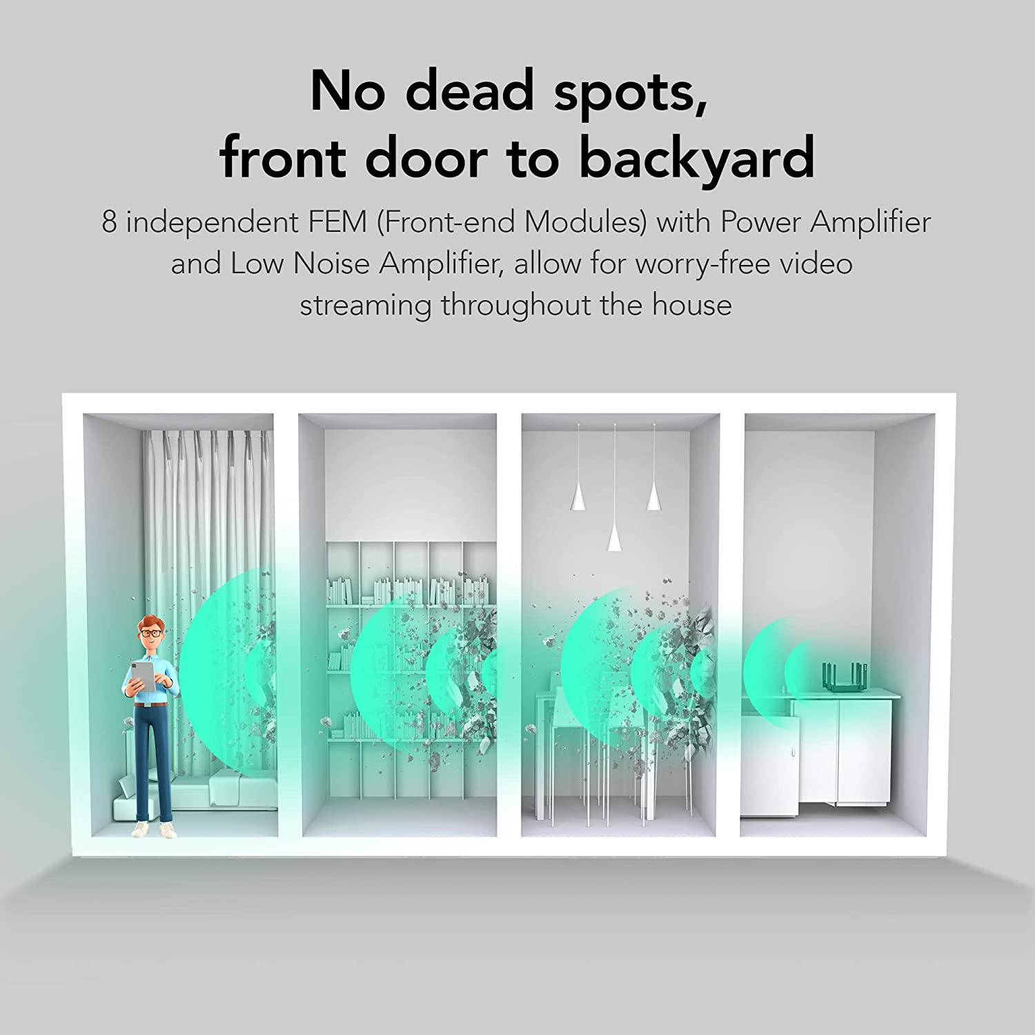 - Better Signal: This Wi-Fi 6 Wireless Router includes eight omnidirectional antennas with 4+4 high-power FEM amplifiers. The wireless signal coverage can reach up to 2000 square feet when combined with beamforming filtering. The signal is stronger when it passes through one more wall than four antennas, and diverse room kinds are not afraid.