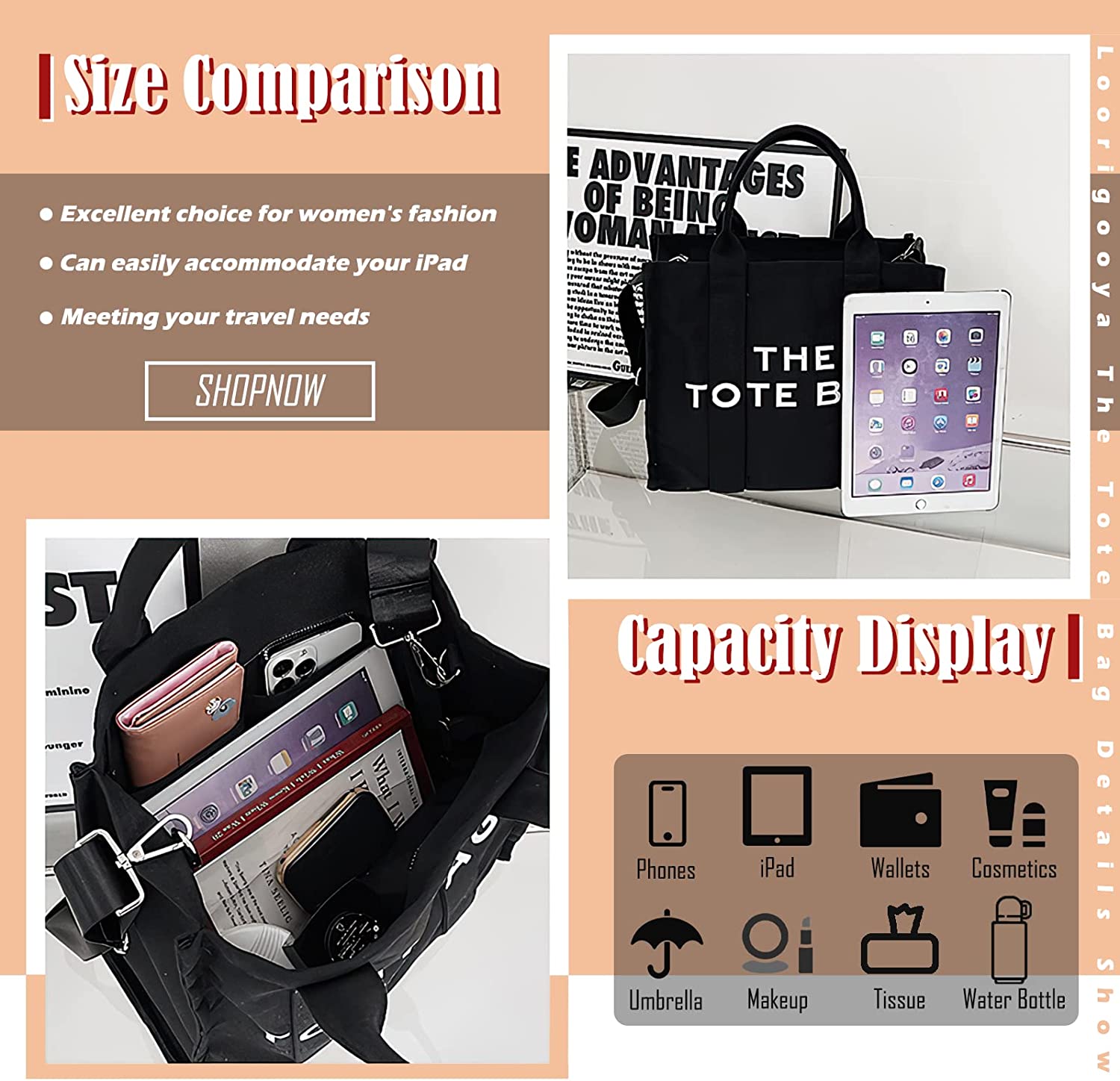 • [Handbag Size] The size of tote bag for women is 12.20 x 5.90 x 10.63 inches / 31 x 15 x 27 cm (L x W x H), it is very convenient for storing your phone, ipad mini, keys, glasses, wallet, snacks, cosmetics and some other daily necessities.
